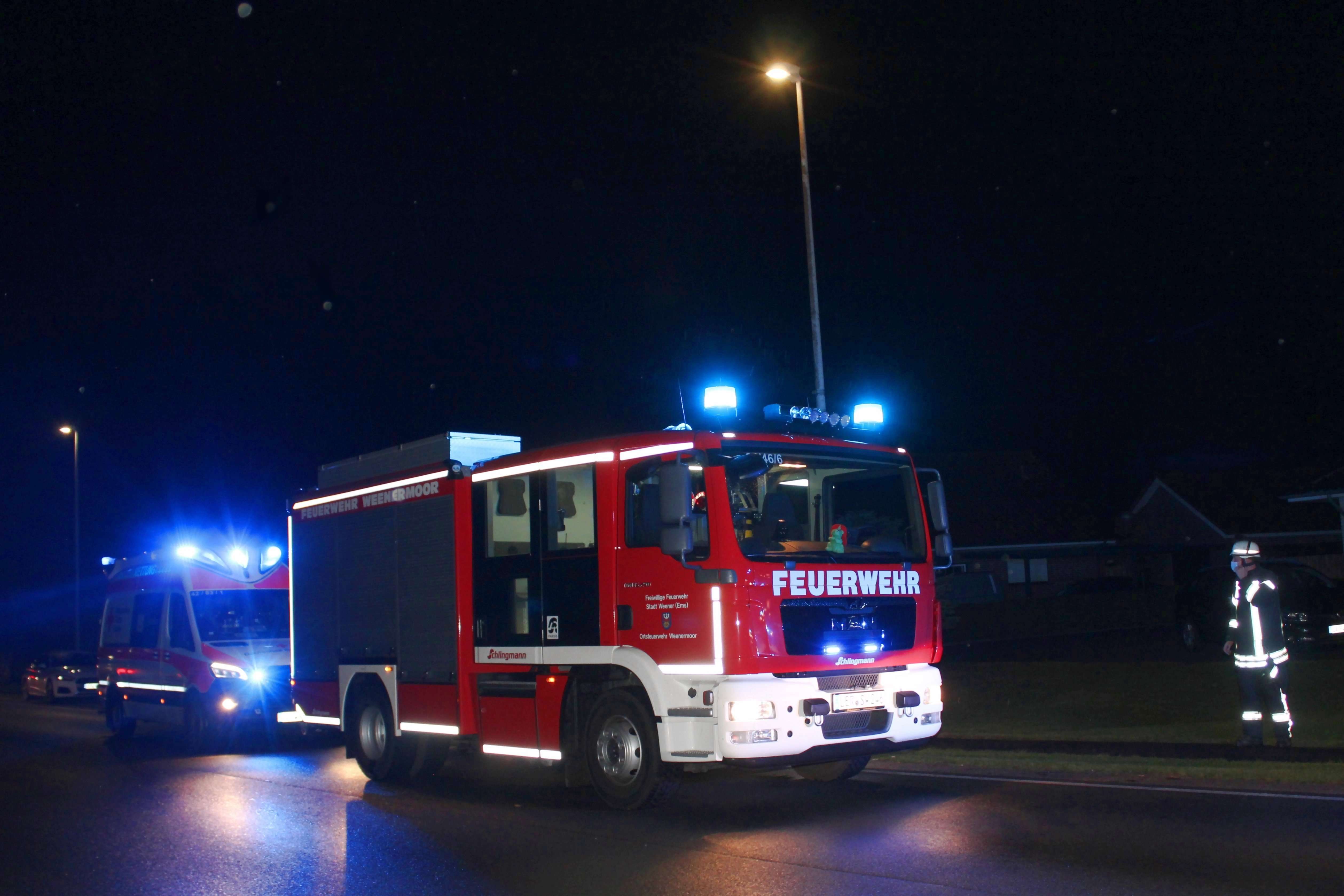Die Feuerwehr Weenermoor war mit dem Hilfeleistungslöschgruppenfahrzeug HLF 10 und die Feuerwehr Weener mit dem Tanklöschfahrzeug TLF 16, dem Löschgruppenfahrzeug LF 16, der Hubrettungsbühne HRB 32 und dem Einsatzleitwagen ELW ausgerückt. Neben den ewa 40 Feuerwehrleuten waren auch die Polizei, der Rettungsdienst und der Energieversorger vor Ort.