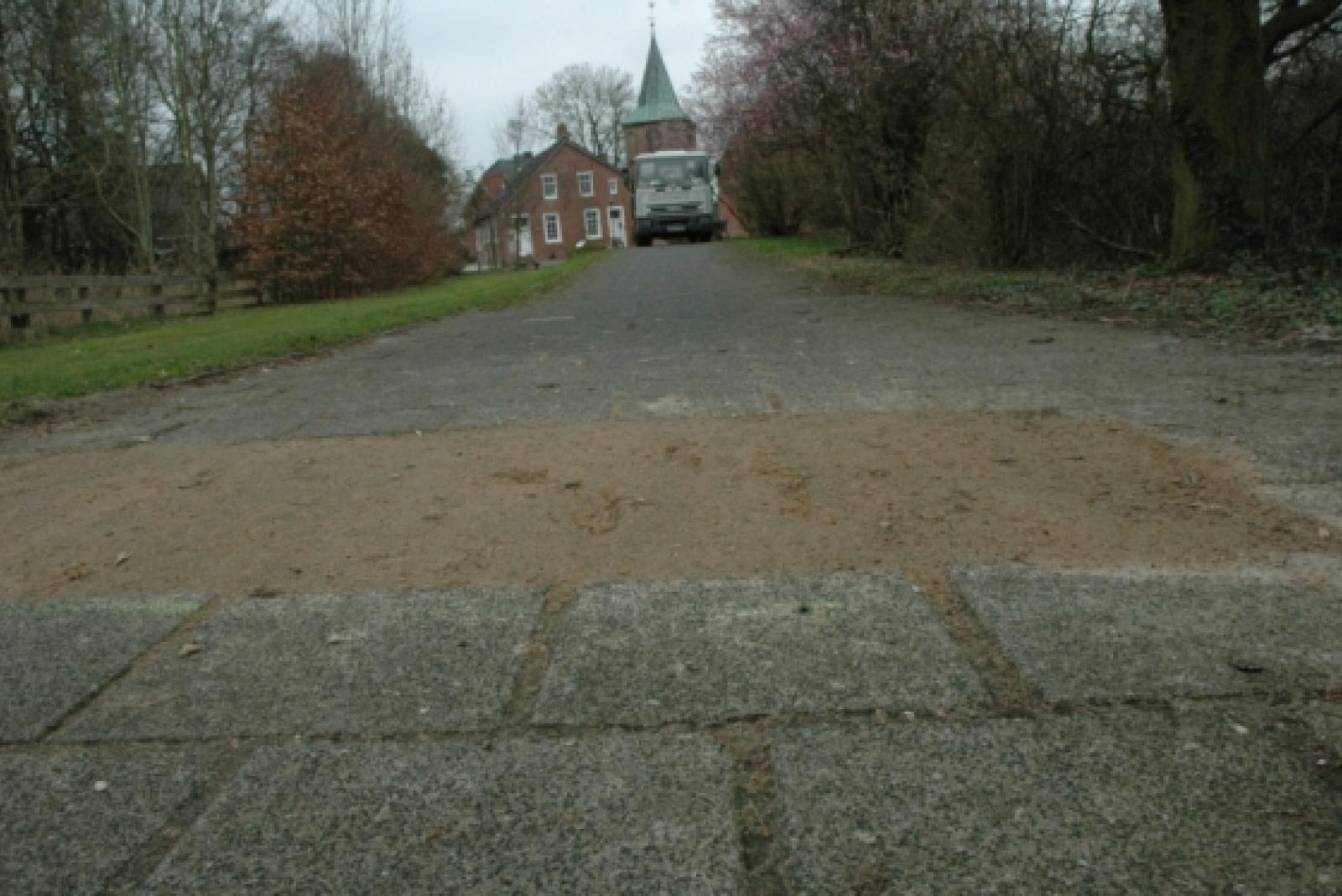 Da staunt der Laie - und der Fachmann wundert sich: Auf zahlreichen Fuß- und Radwegen in der Stadt Leer und den Ortsteilen - so auch in Bingum - bleibt der Blick von Passanten und Anwohnern an sandigen Flickstellen hä...