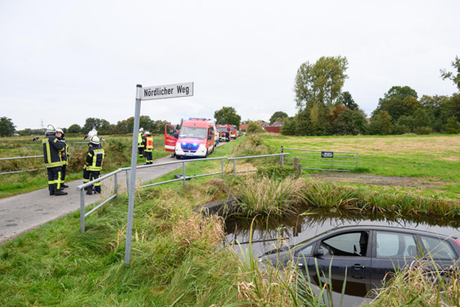 Der Mann war alleine in seinem Wagen auf dem Schanzweg in Fahrtrichtung Diele unterwegs, als er einer Linkskurve von der Fahrbahn abkam und anschließend mit seinem Fahrzeug im Dieler Schöpfwerkstief landete.