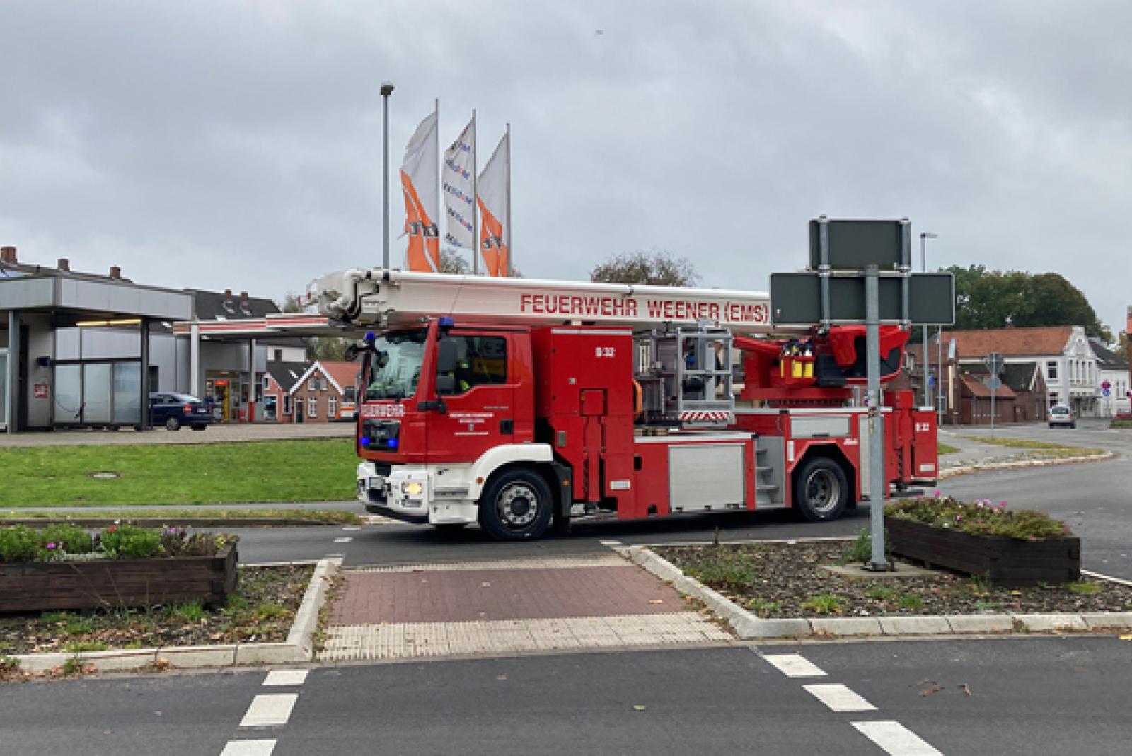 Die Feuerwehr Weener war mit dem Tanklöschfahrzeug TLF 16, der Hubrettungsbühne HRB 32, dem Einsatzleitwagen ELW und mehreren Einsatzkräften vor Ort.