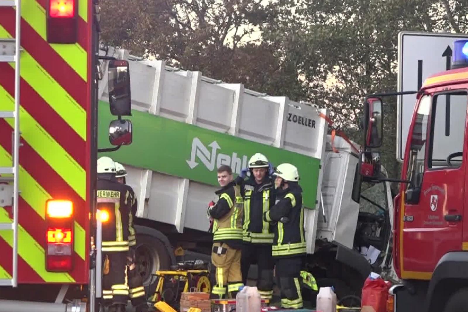 Der 56-Jährige und ein 18 Jahre alter Beifahrer aus einem der Lastwagen kamen schwer verletzt ins Krankenhaus. Ein Polizeisprecher sprach von einem »schrecklichen Bild« an der Unfallstelle. Die Bundesstraße war am Freitagmorgen zunächst noch vollständig gesperrt. Grund seien Reinigungsarbeiten, sagte ein Polizeisprecher.