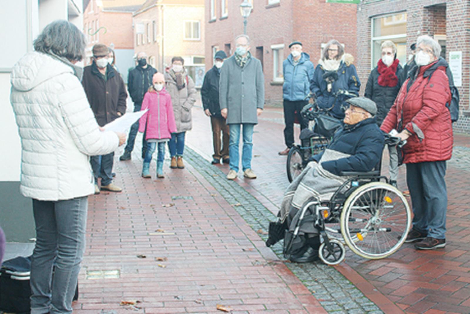 Albrecht Weinberg spricht Gebet bei »Stolperstein«-Verlegung in Weener