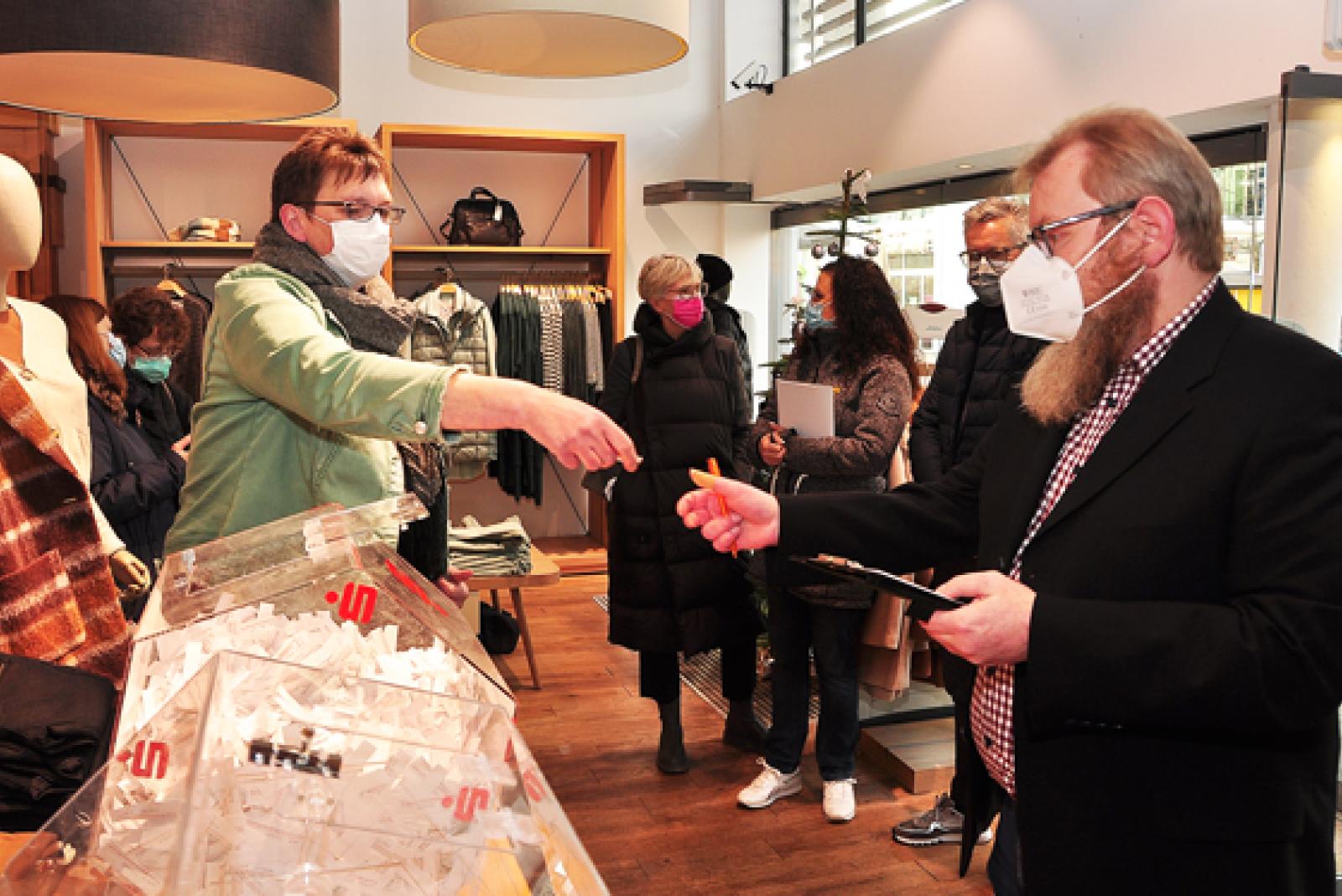 Unter der Aufsicht von Notar Ulf Nannen wurden heute Vormittag im Eingangsbereich der Esprit-Filiale in der Leeraner Mühlenstraße die Gewinnerlose der Losserien A und B der diesjährigen Weihnachtsverlosung gezogen. Der Hauptgewinn der Serie A, ein VW Up ...