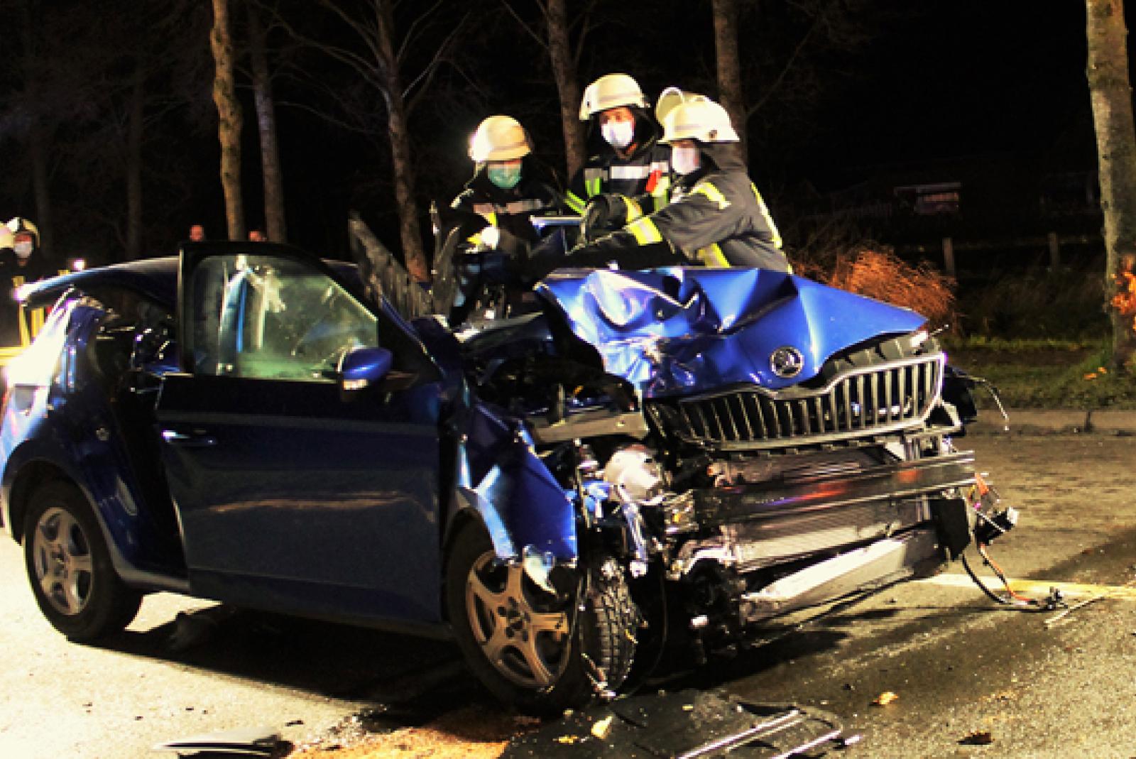 Die Frau hatte, nachdem sie von der Straße abgekommen war, ein Verkehrsschild überfahren und war mit ihrem Wagen gegen einen Baum geprallt. Die Wucht dieses Aufpralls führte dazu, dass das Fahrzeug auf die gegenüberliegende Fahrbahn schleuderte und die Fahrerin in ihrem Auto eingeklemmt wurde.