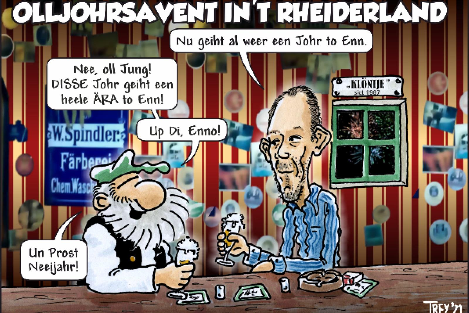 Am letzten Tag des Jahres nimmt RZ-Cartoonist Thomas Trey nicht nur Abschied von 2021, sondern auch von der Weeneraner Kult-Kneipe »Klöntje«. Mit Wirt Enno Janssen, der seit August 1987 im Erdgeschoss der Memmingaburg an der Westerstraße hinter der Theke stand, ...