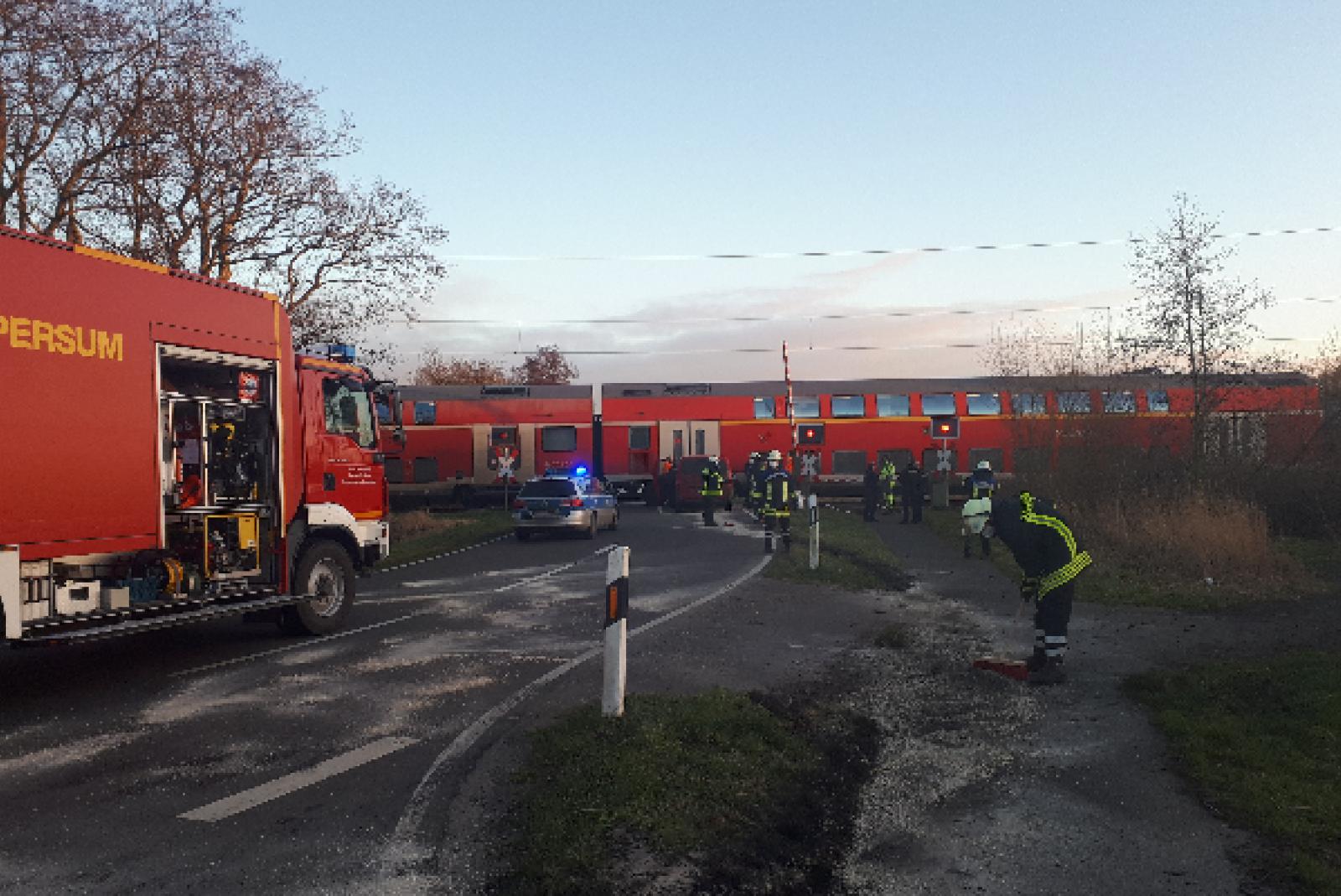 Die Fahrerin eines Kleintransporters hatte eine Verkehrsinsel vor einem Bahnübergang überfahren, dabei die Ölwanne beschädigt und war mit dem Fahrzeug bis in die geschlossenen Bahnschranken am Bahnübergang in Loppersum gefahren. Der herannahende Zug von Norddeich in Richtung Emden hatte daraufhin eine Notbremsung eingeleitet und das Fahrzeug nur um wenige Zentimeter verfehlt, sodass es glücklicherweise zu keinem Personenschaden gekommen ist, heißt es in einer Mitteilung der Feuerwehr.