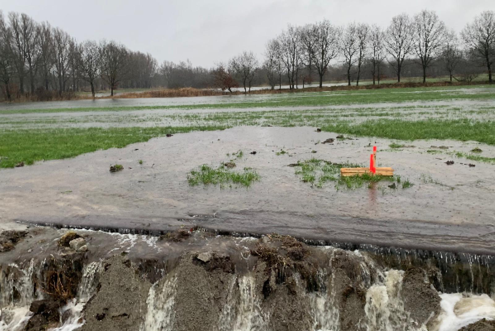 Gegen 8.30 Uhr ging beim Ortsbrandmeister der Feuerwehr Haxtum ein Anruf der Kooperativen Regionalleitstelle Ostfriesland ein. Das Wasser drohe in die Häuser zu laufen, hieß es. Bei der Erkundung stellte Ortsbrandmeister Keno Wessels fest, dass der Graben, in den das Klärwerk das saubere Wasser ableitet, vollständig überflutet war. Dadurch wurde das Wasser auf die Felder gedrückt.