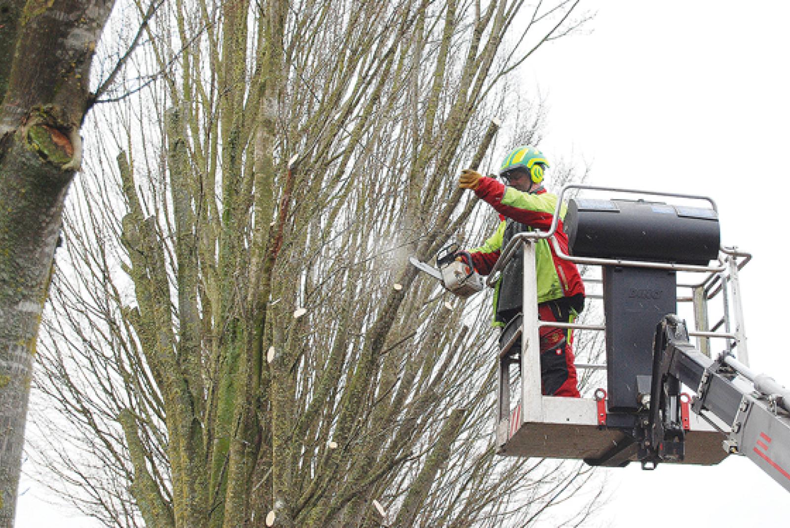 An der Straße »Maelanne« in Holthusen sind Mitarbeiter des städtischen Bauhofes seit gestern damit beschäftigt, rund 20 Säuleneichen an der Siedlungsstraße zurückzuschneiden. Die Arbeiten, für die ein Hubsteiger im Einsatz ist (unser Bild), erfordern ...