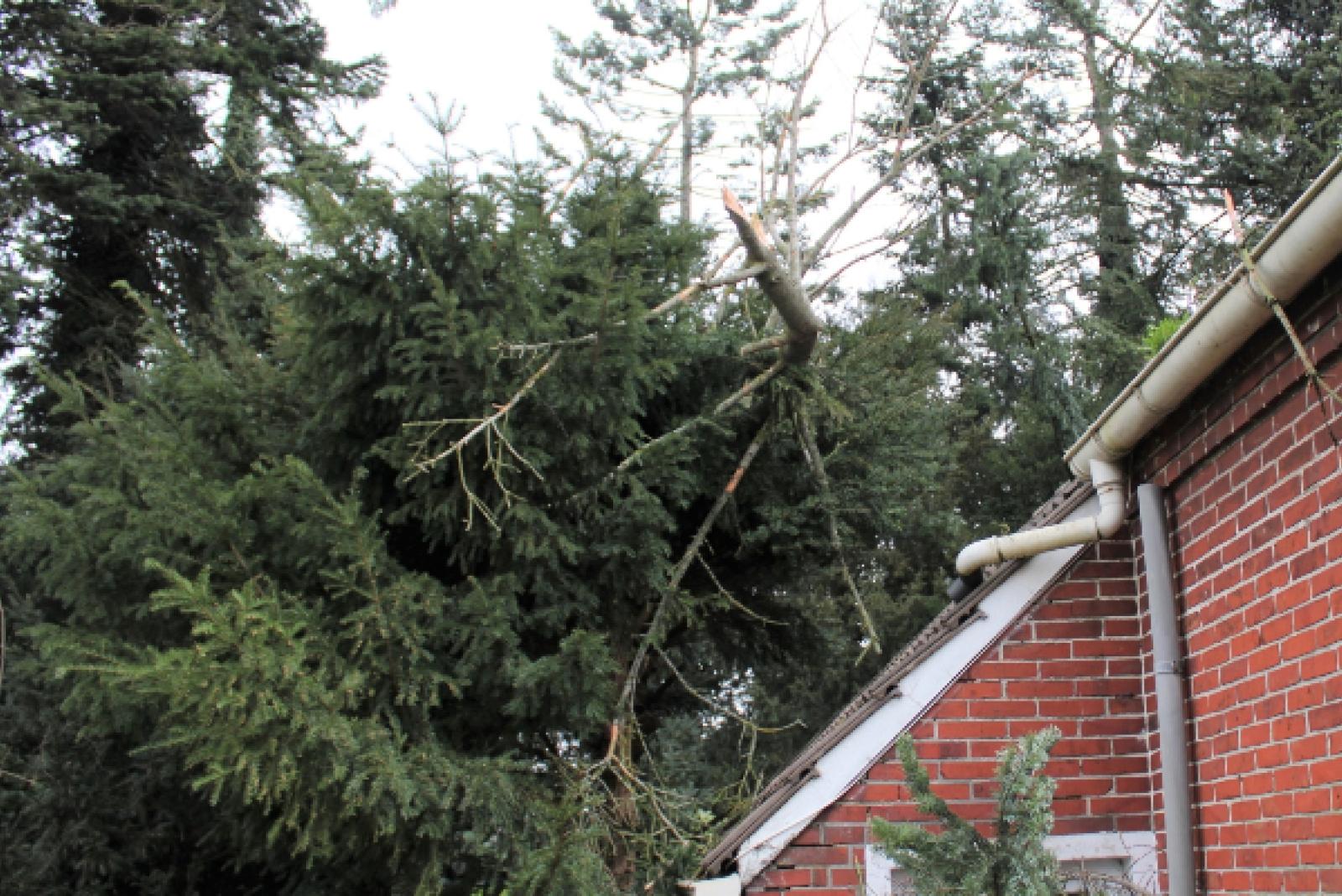 Als die Einsatzkräfte eintrafen, war bereits ein dicker Ast auf das Dach des Hauses gestürzt.