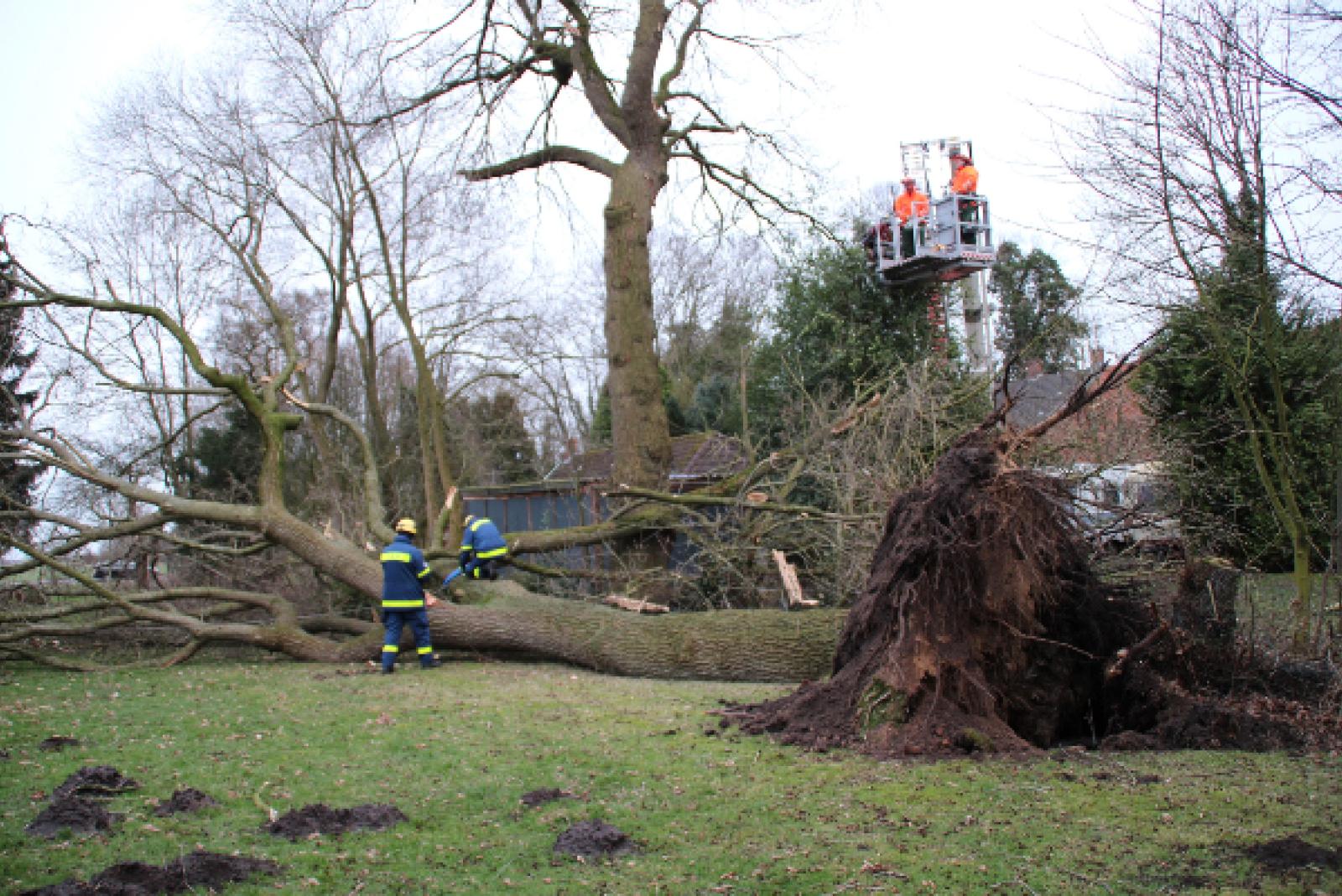 Die Feuerwehr Weenermoor ist heute am späten Nachmittag zu einem Hilfeleistungseinsatz „Sturmschaden Baum droht auf Haus zu fallen“ alarmiert worden.