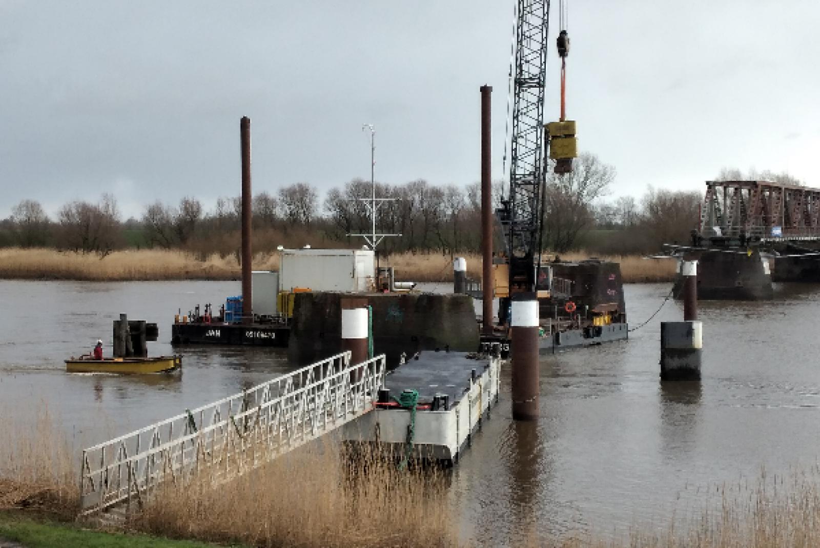Schwimmkran bald wieder an der Friesenbrücke