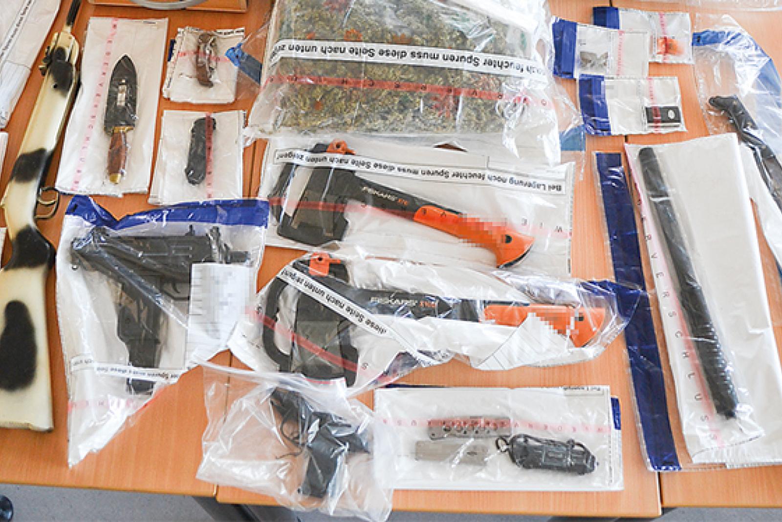 Insgesamt wurden bei den Durchsuchungen am Mittwoch nach ersten Auswertungen 4,7 Kilogramm Amphetamin, 100 Gramm Kokain und drei Kilogramm Marihuana beschlagnahmt. Darüber hinaus wurden etliche Waffen - darunter Schusswaffen und Messer - sowie eine vierstellige Summe Bargeld aufgefunden und sichergestellt. Zudem wurden Laptops, Datenträger und Handys sowie zwei Fahrzeuge beschlagnahmt.