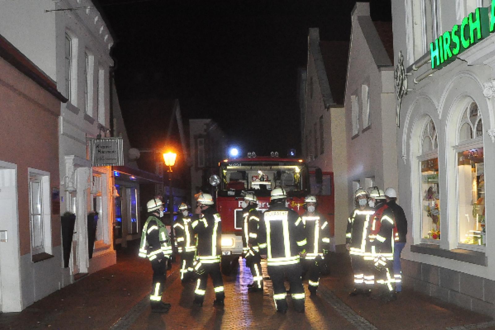 Um 23.35 Uhr lautete das Alarmstichwort für die Feuerwehr: „Zimmerbrand mit Menschenleben in Gefahr“. Die Erkundung durch die Einsatzkräfte außerhalb des Wohn- und Geschäftshauses bestätigte auch den augenscheinlichen Feuerschein, es wurde aber keine Rauchentwicklung festgestellt.