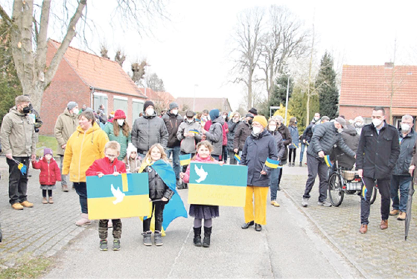 Zahlreiche Gruppen und Vereine aus Stapelmoor, Diele und Stapelmoorerheide hatten am Sonntag zu einer Friedenskundgebung in Stapelmoor aufgerufen. Sie wurde gut angenommen, verlief friedlich und setzte ein öffentliches Zeichen für Solidarität mit den Menschen im Kriegsgebiet der Ukraine.