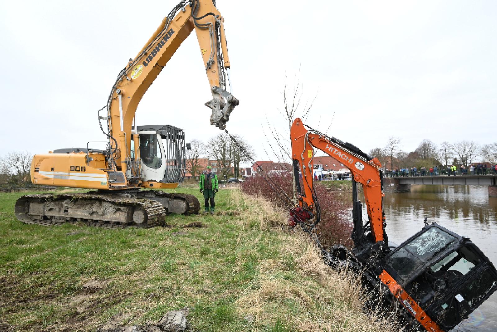 Der Bagger wurde mithilfe eines zweiten Baggers aus dem Kanal geborgen.