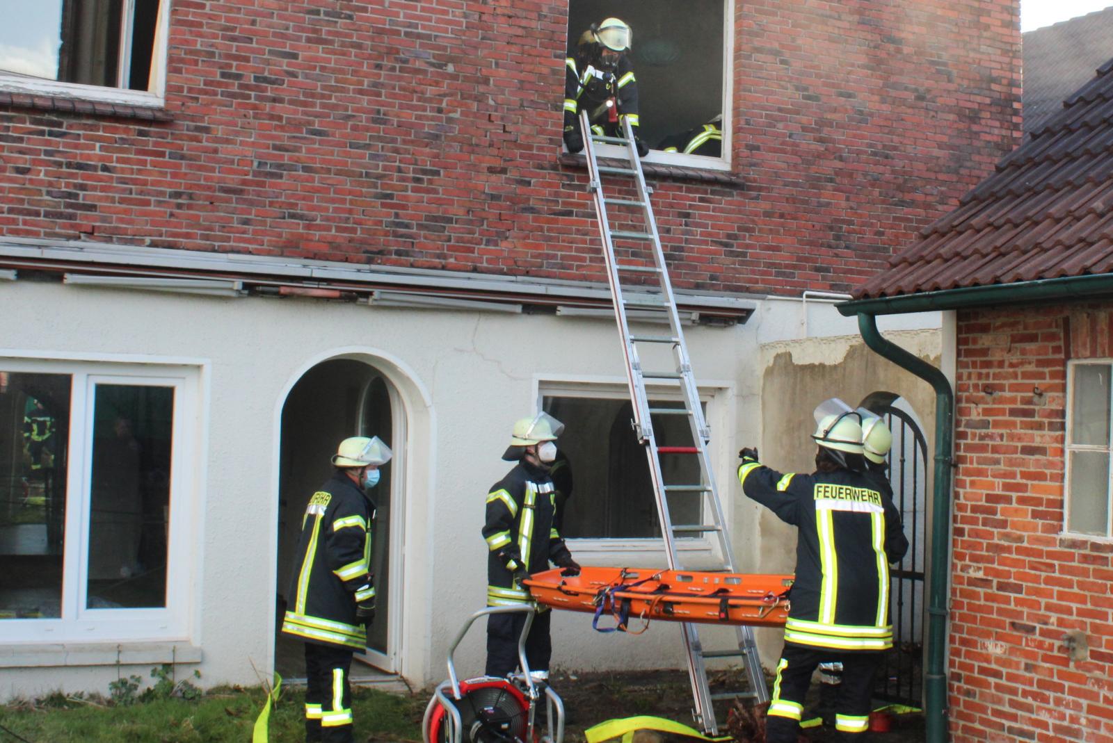 Feuerwehr Weener bei Großübung an der Westerstraße: Gebäudebrand