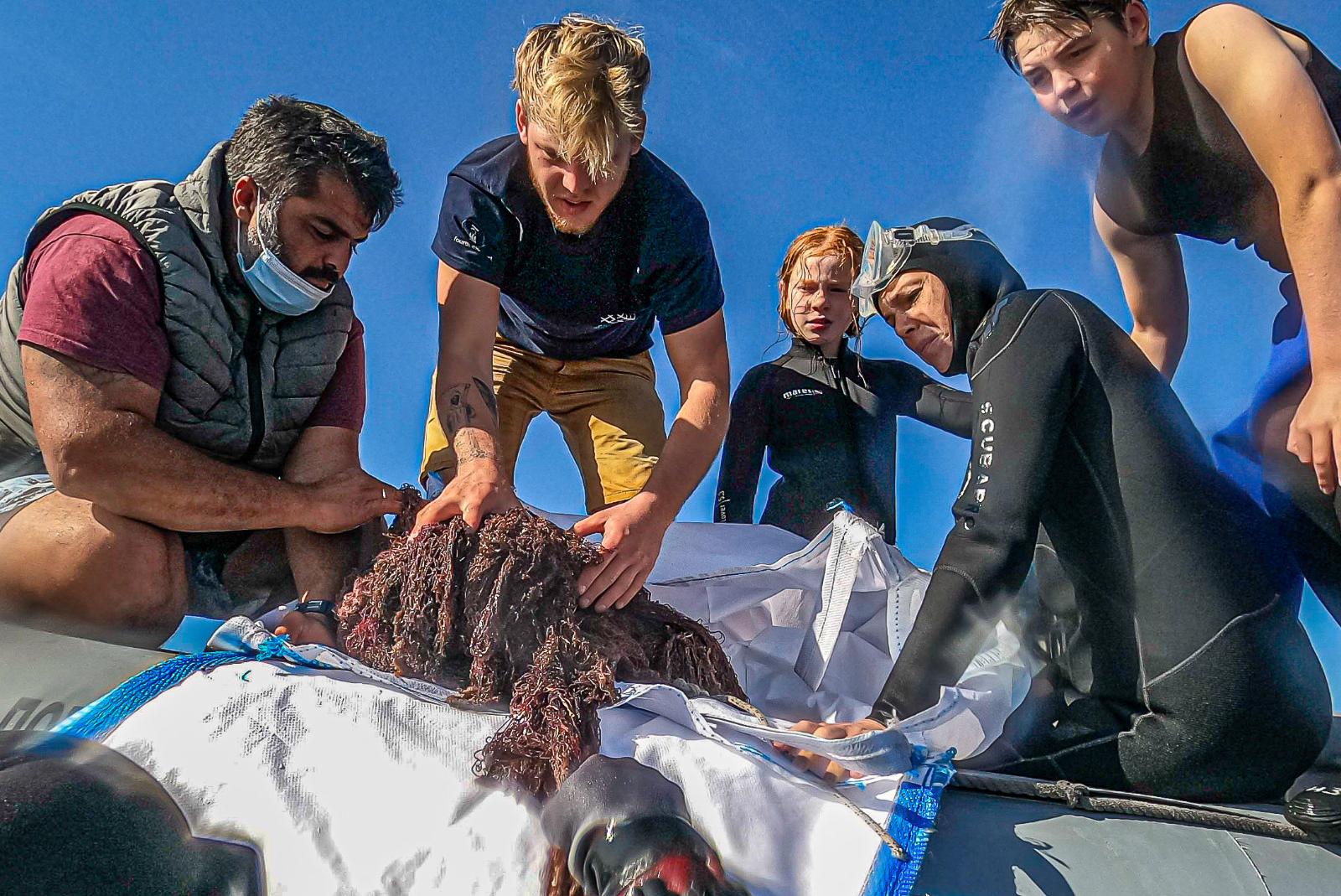 Taucher-Team will ab dem 2. Mai solche Netze aus der Nordsee bergen