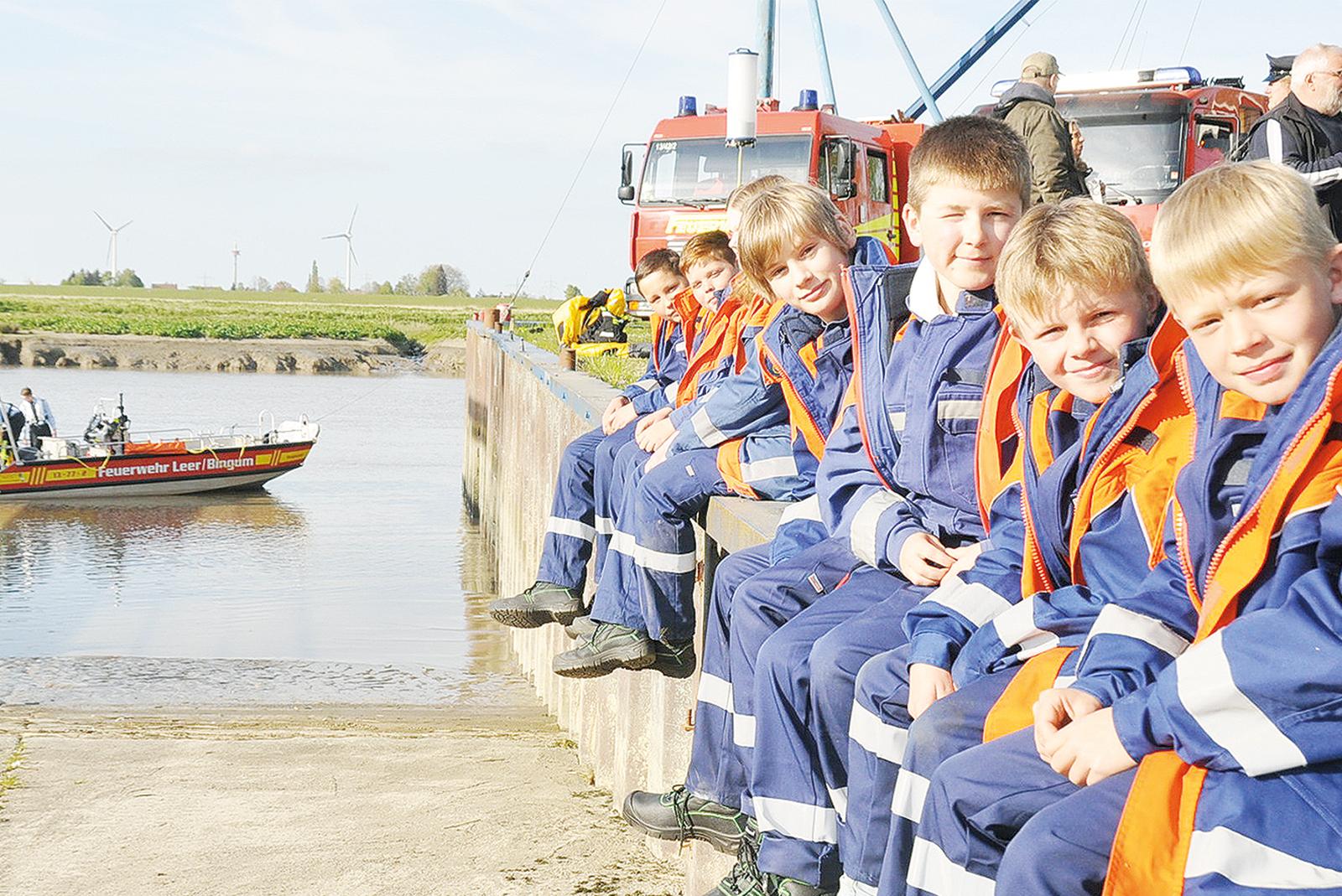 Junge »Seh-Leute«: Auch die Jugendfeuerwehr Bingum nahm das neue Boot gleich in Augenschein.  © Foto: Wolters