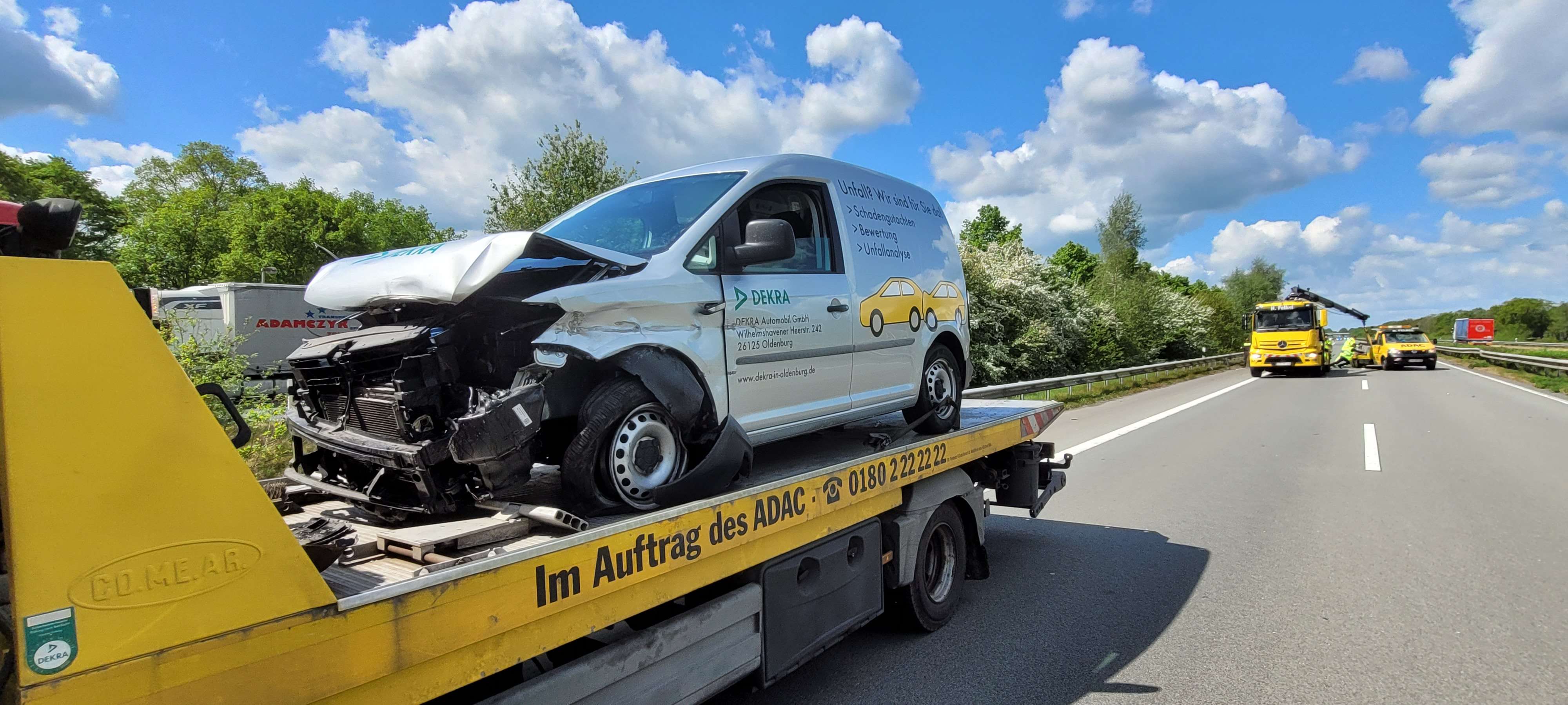 Ein 50-jähriger Mann aus Oldenburg befuhr den Hauptfahrstreifen mit einem VW Caddy mit Anhänger in Richtung Oldenburg, als ein 63-jähriger Mann aus Weener mit einem Toyota auf das vor ihm fahrende Fahrzeuggespann auffuhr.