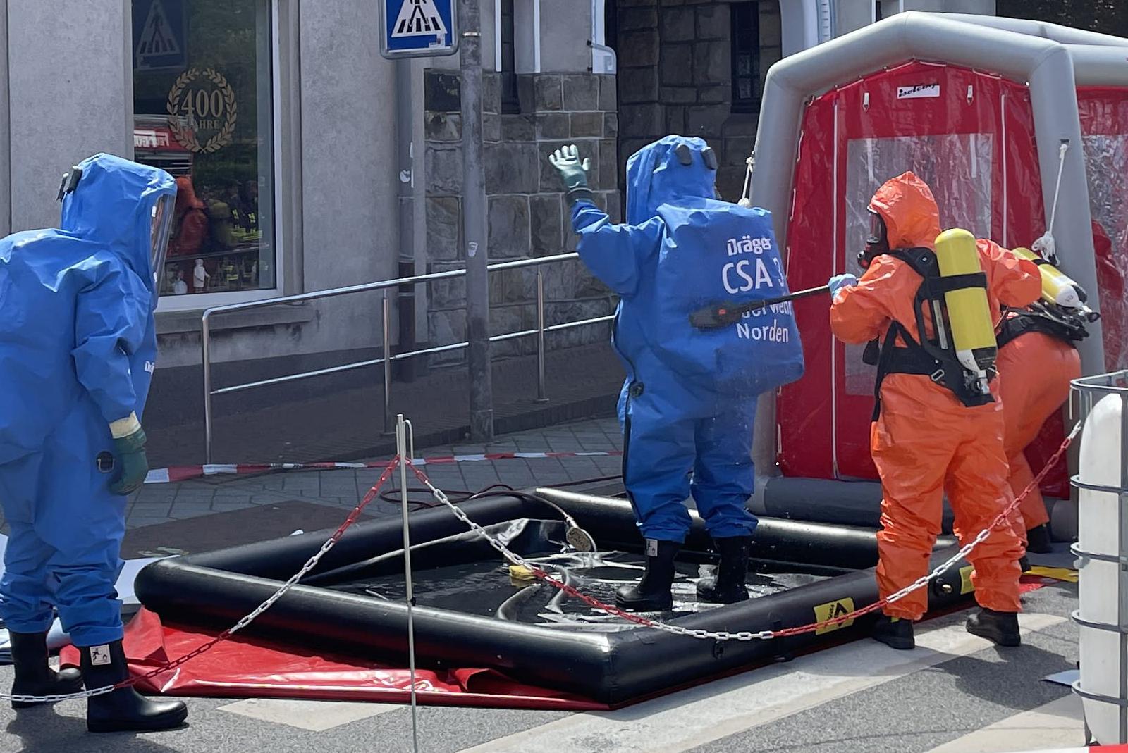 60 Einsatzkräfte nach Gefahrstoffunfall in Apotheke in Hage gefordert