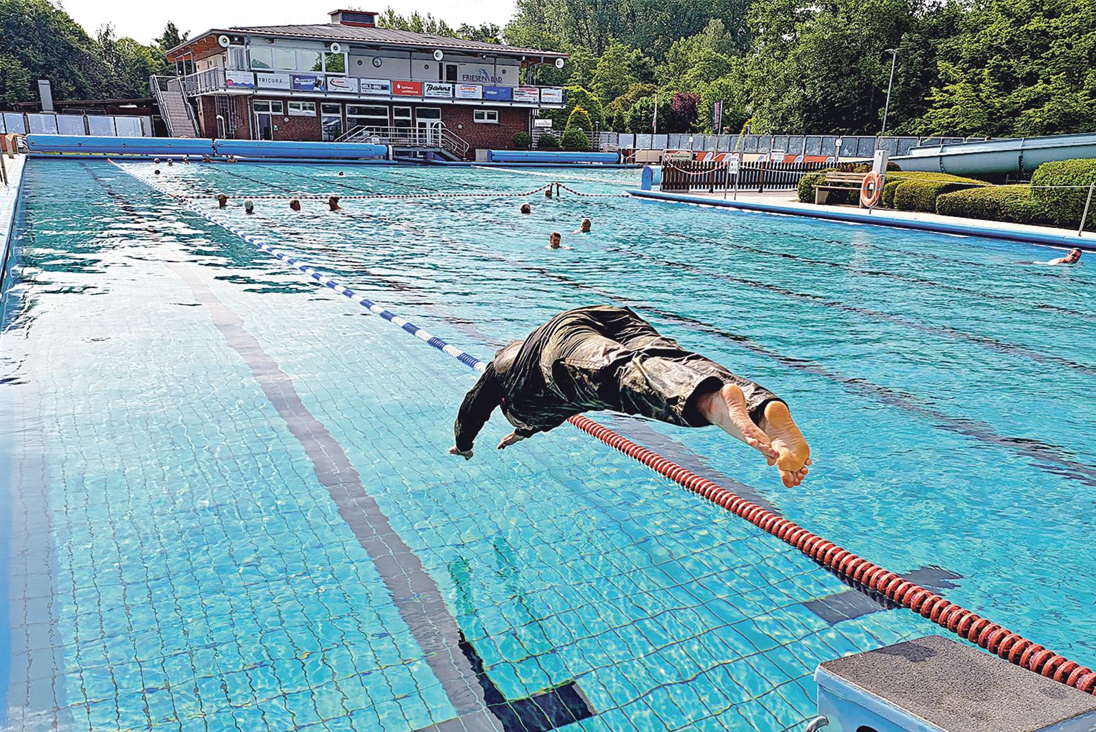 Heute ist wieder Waschtag«, sagt ein Frühschwimmer augenzwinkernd, wenn er am Mittwochmorgen seine Runden im »Friesenbad« in Weener dreht. Denn allwöchentlich springen Soldatinnen und Soldaten im Kampfanzug ins Wasser. Der Grund ist allerdings ...