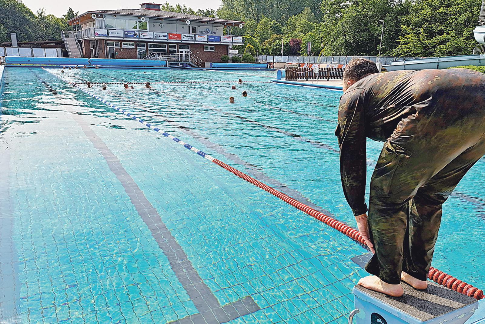 Das Freibad in Weener dient den Soldatinnen und Soldaten der Evenburg-Kaserne aus Leer immer mittwochs als Trainingsstätte. Auch heute Morgen tummelten sich wieder Angehörige des Kommandos Schnelle Einsatzkräfte Sanitätsdienst »Ostfriesland« ...