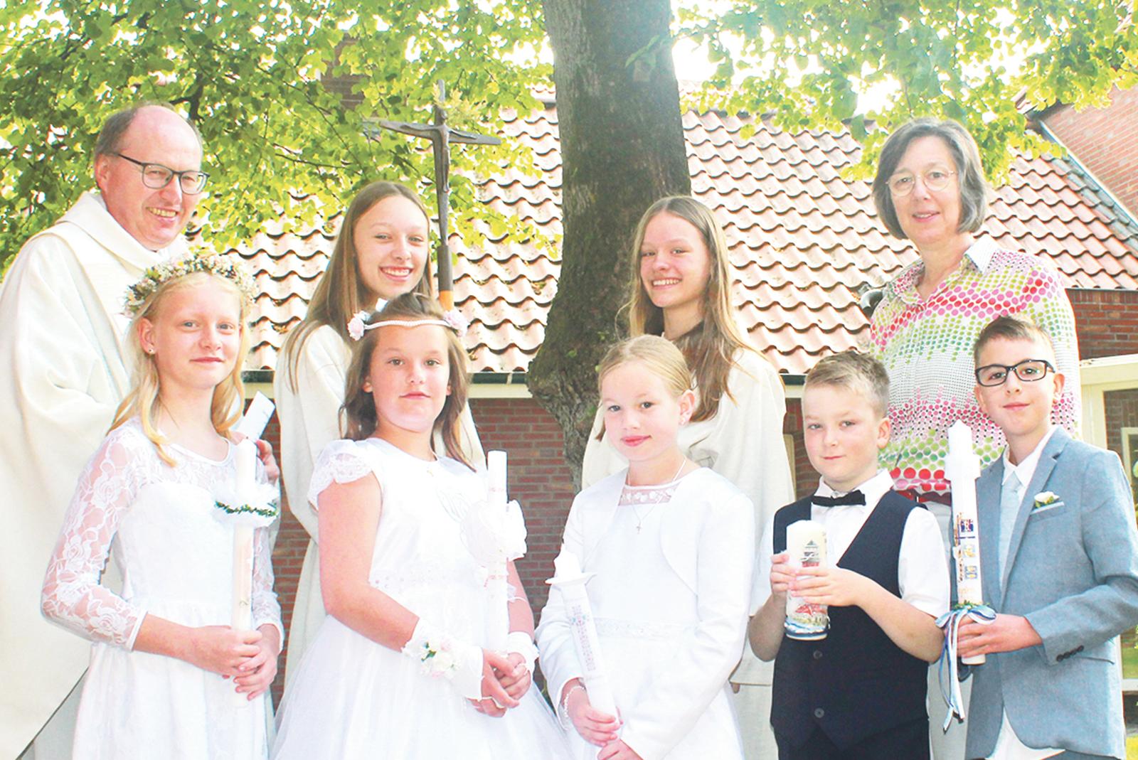 Unter dem Motto »Bei mir bist du groß« und mit der Geschichte des Zöllners Zachäus feierten fünf Kinder aus dem Rheiderland nun in der katholischen Kirchengemeinde Weener ihre Erstkommunion. Das Foto zeigt Pfarrer Martin Stührenberg, die ...