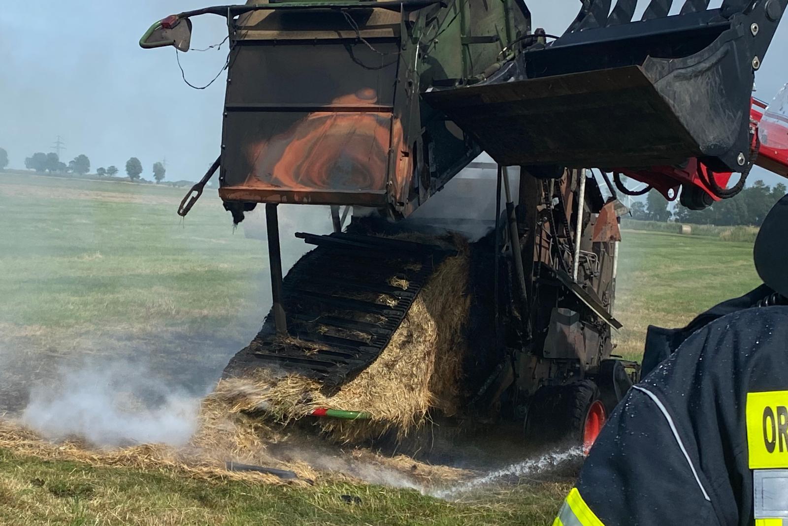 Um 15.35 Uhr wurden am Montag in Westerbur im Landkreis Aurich die Ortswehren Roggenstede, Dornum und Westerbur zu einem Feuer alarmiert. Während der Erntearbeiten geriet im laufenden Betrieb eine Rundballenpresse in Brand und ist als Totalschaden einzustufen.