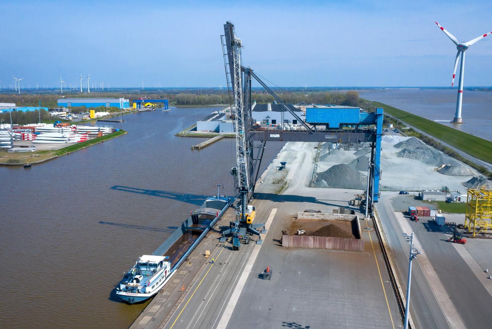 Mit einer Sprengung wird die letzte noch verbliebene Umschlagbrücke am Emder Südkai abgerissen. Durch eine ferngesteuerte, elektrische Zündung soll der mehr als 1000 Tonnen schwere Stahlkoloss am heutigen Montag um 19 Uhr samt dem Auslegerkran kontrolliert zum Einknicken gebracht ...