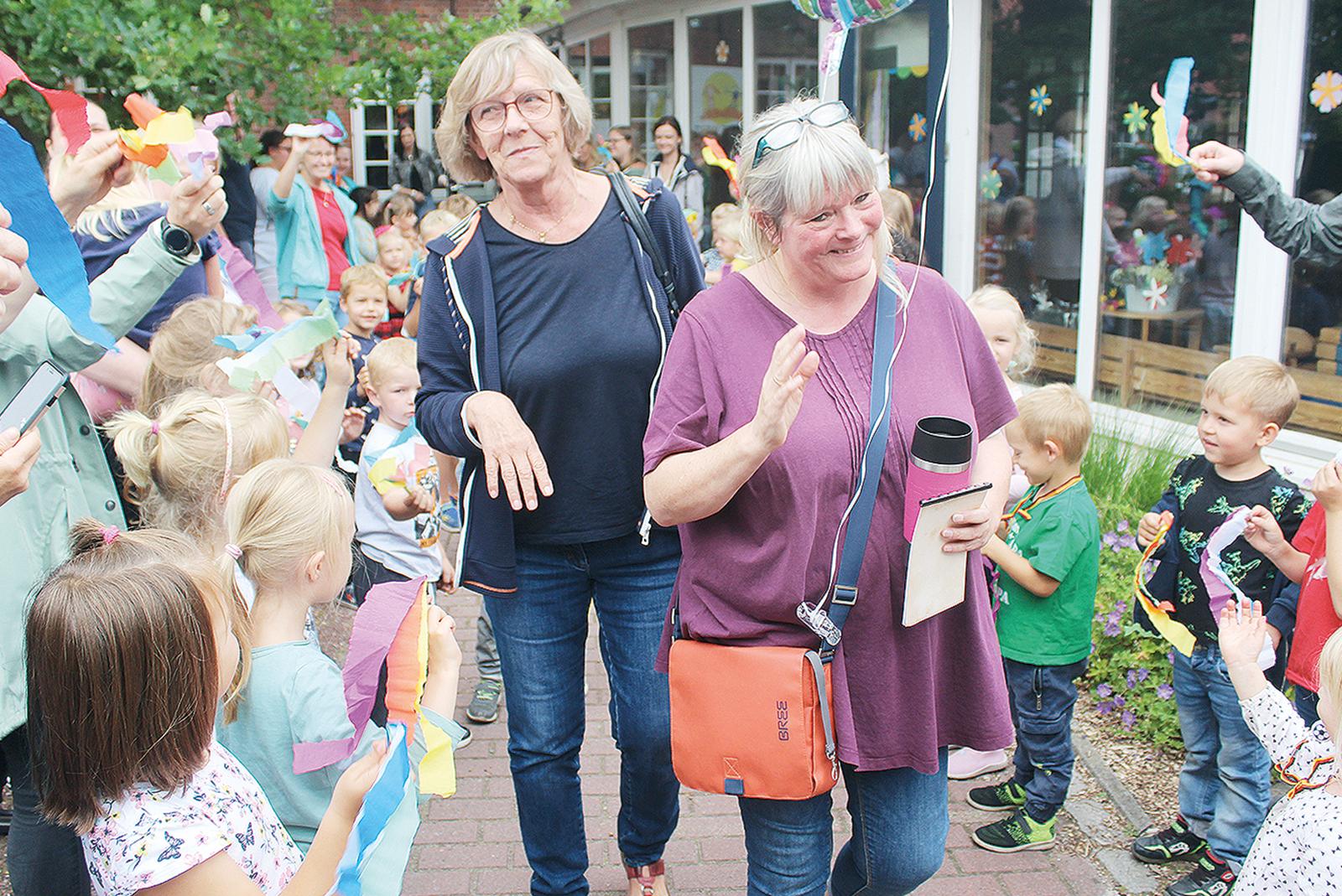 Eine Ära ist zuende gegangen: Mit den Erzieherinnen Cornelia Taubert und Martina Fröhling-Not wurden am Freitag zwei langjährige Säulen des Kindergartens »Bunte Welt« in Weener in den Ruhestand verabschiedet.