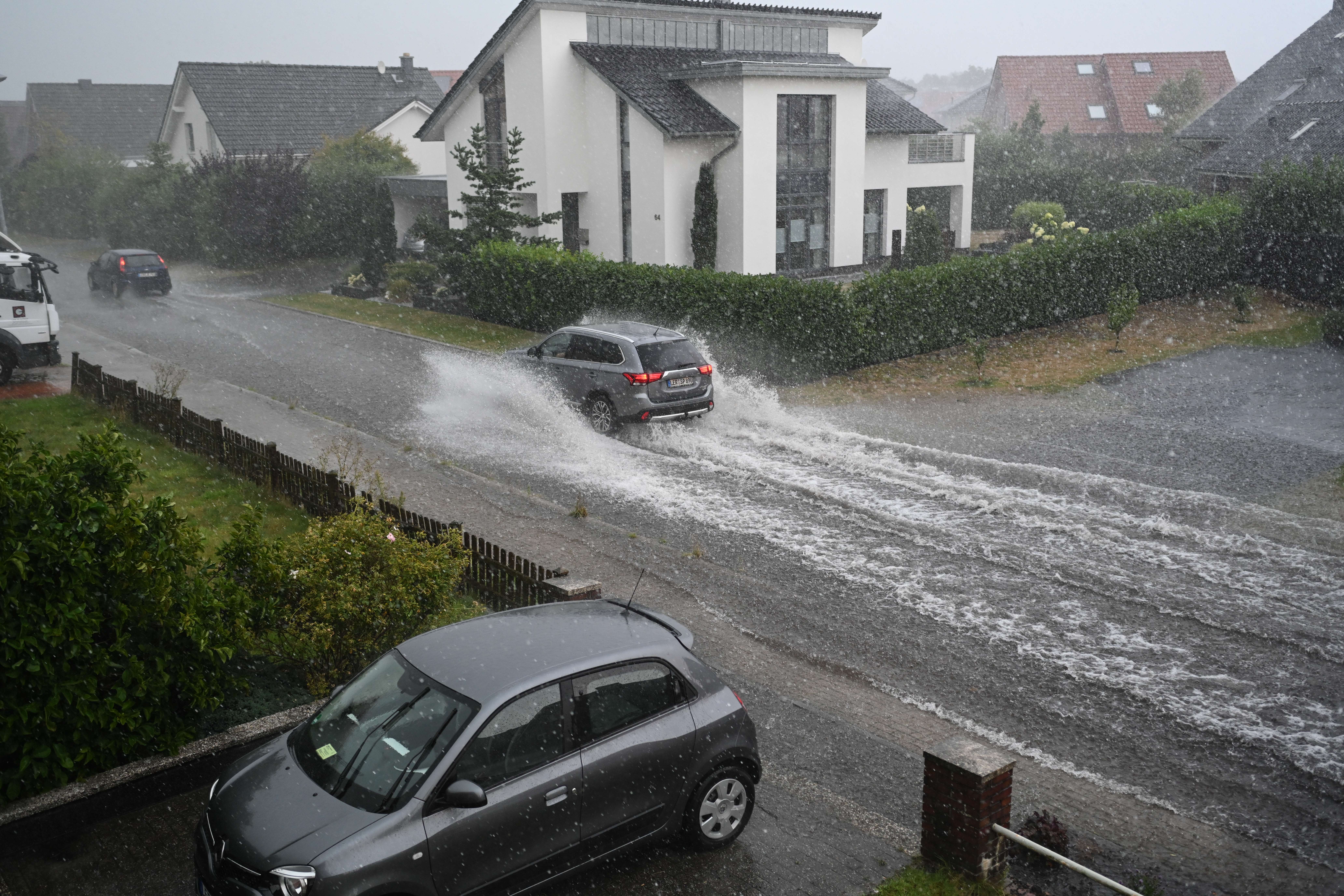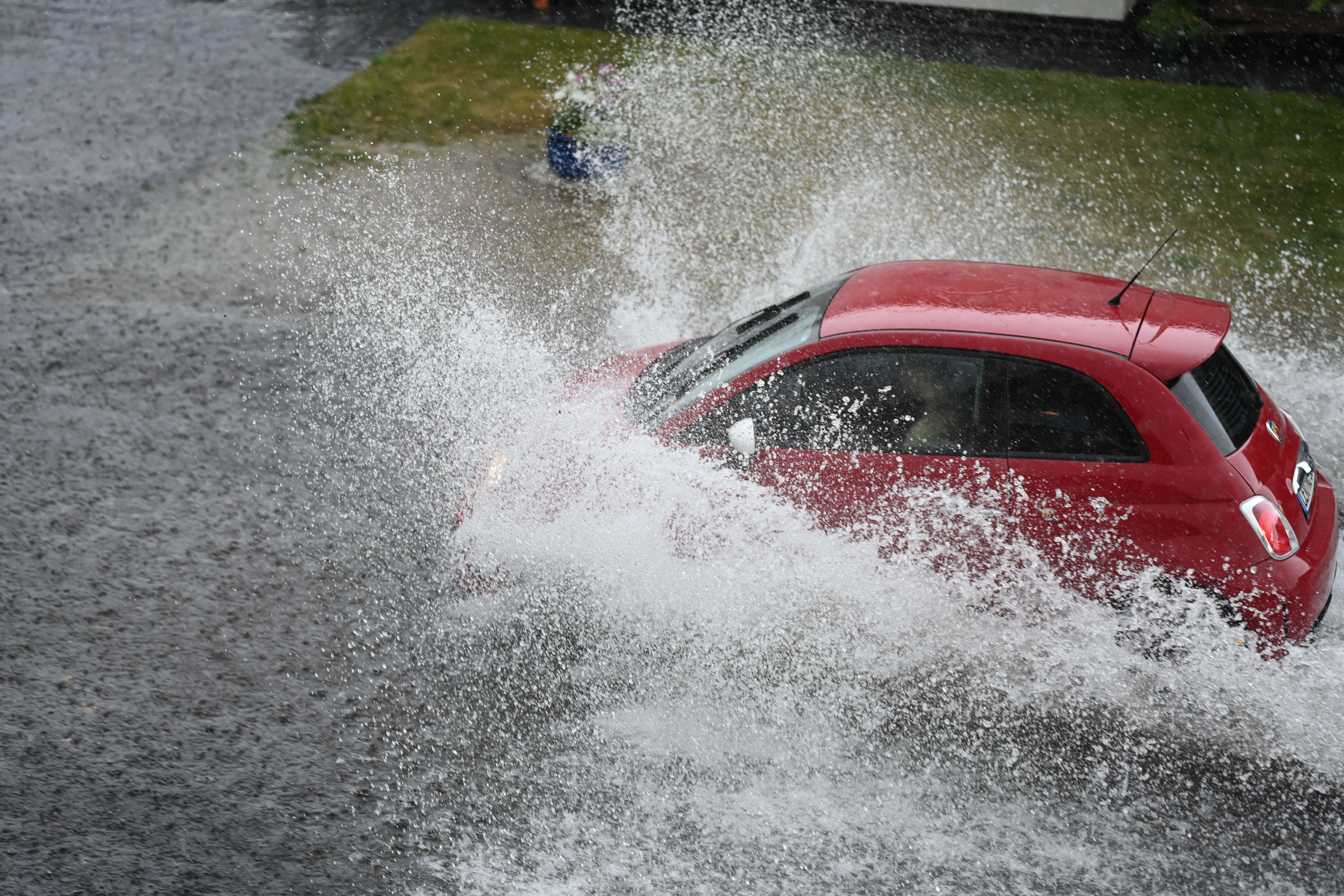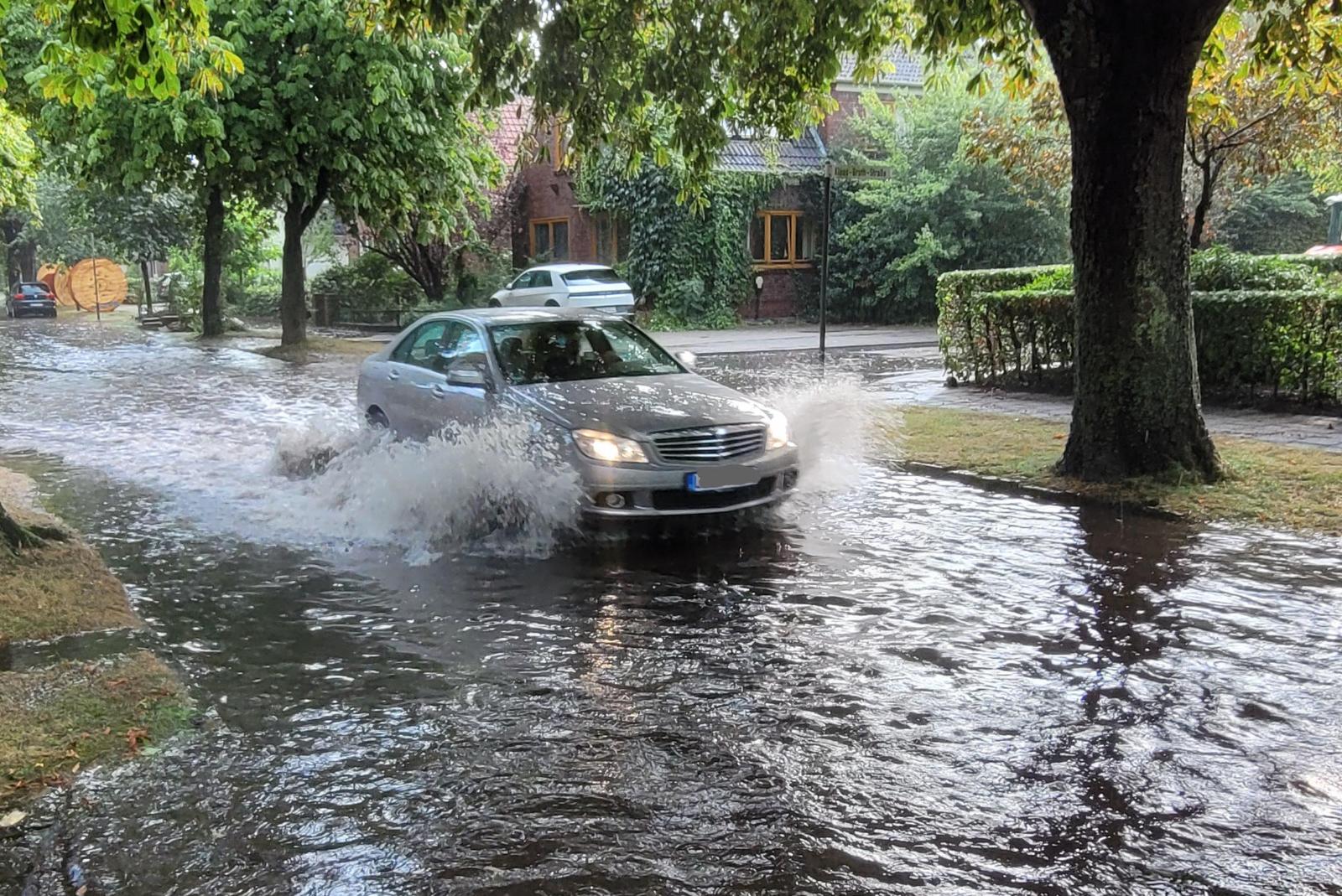 Um kurz nach 16 Uhr prasselten heftige Regengüsse auf das Kreisgebiet herab und stärkere Winde setzten sein. Dabei stürzten einige Bäume auf Straßen. In Rhaude geriet ein Auto unter einem Baum.