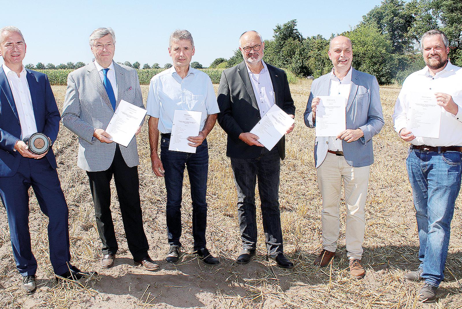 Vertreter der betroffenen Landesbauernverbände und des Leitungsbauunternehmens Amprion haben jetzt bei einem Treffen in Rhede (Kreis Borken) ihre Einigung auf eine Rahmenregelung zum Leitungsbauvorhaben A-Nord bekannt gegeben.