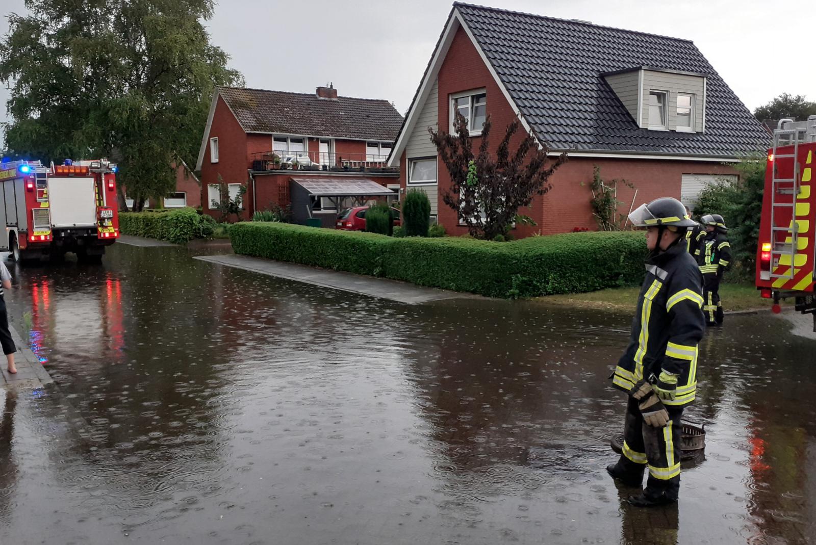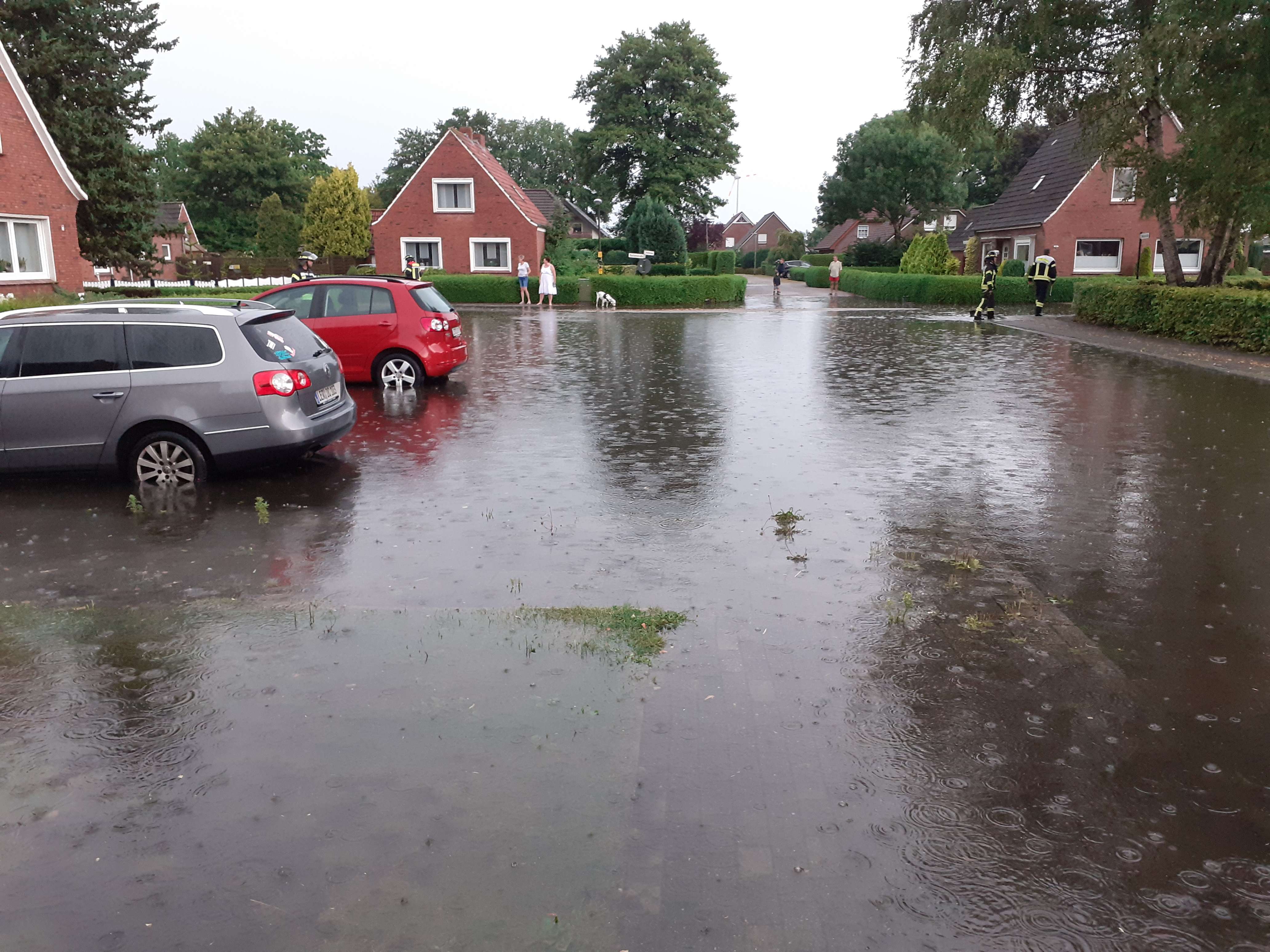 Nach dem Gewitter mit Starkregen waren gestern am frühen Abend sowohl die Feuerwehr in Tichelwarf als auch in Bunde im Einsatz. In Tichelwarf war ein Keller voll Wasser gelaufen, im Bereich Weidenstraße in Bunde waren mehrere Straßen überflutet.