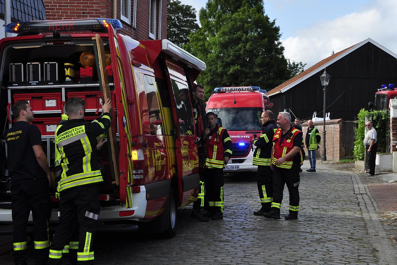 Im Einsatz waren neben der Feuerwehr Weener und dem Gefahrgutzug der Kreisfeuerwehr die Polizei, der Energieversorger EWE, ein Notarzt und der Rettungsdienst. Insgesamt waren rund 30 Einsatzkräfte vor Ort.