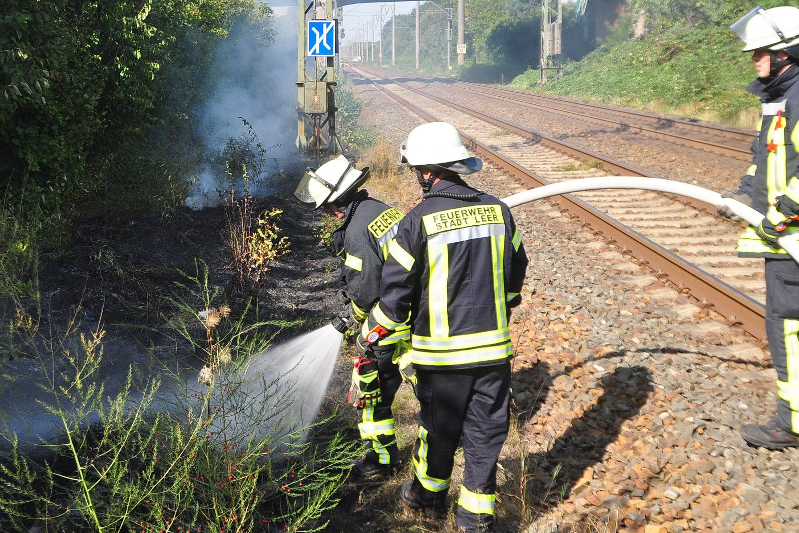 Mehrere Alarmierungen von Feuerwehren gingen am Montagnachmittag ein, weil entlang der Bahnstrecke zwischen Ihrhove und Neermoor an vielen Stellen die knochentrockene Böschung brannte. Rund 130 Einsatzkräfte der örtlichen Feuerwehren seien zur Brandbekämpfung ausgerü...