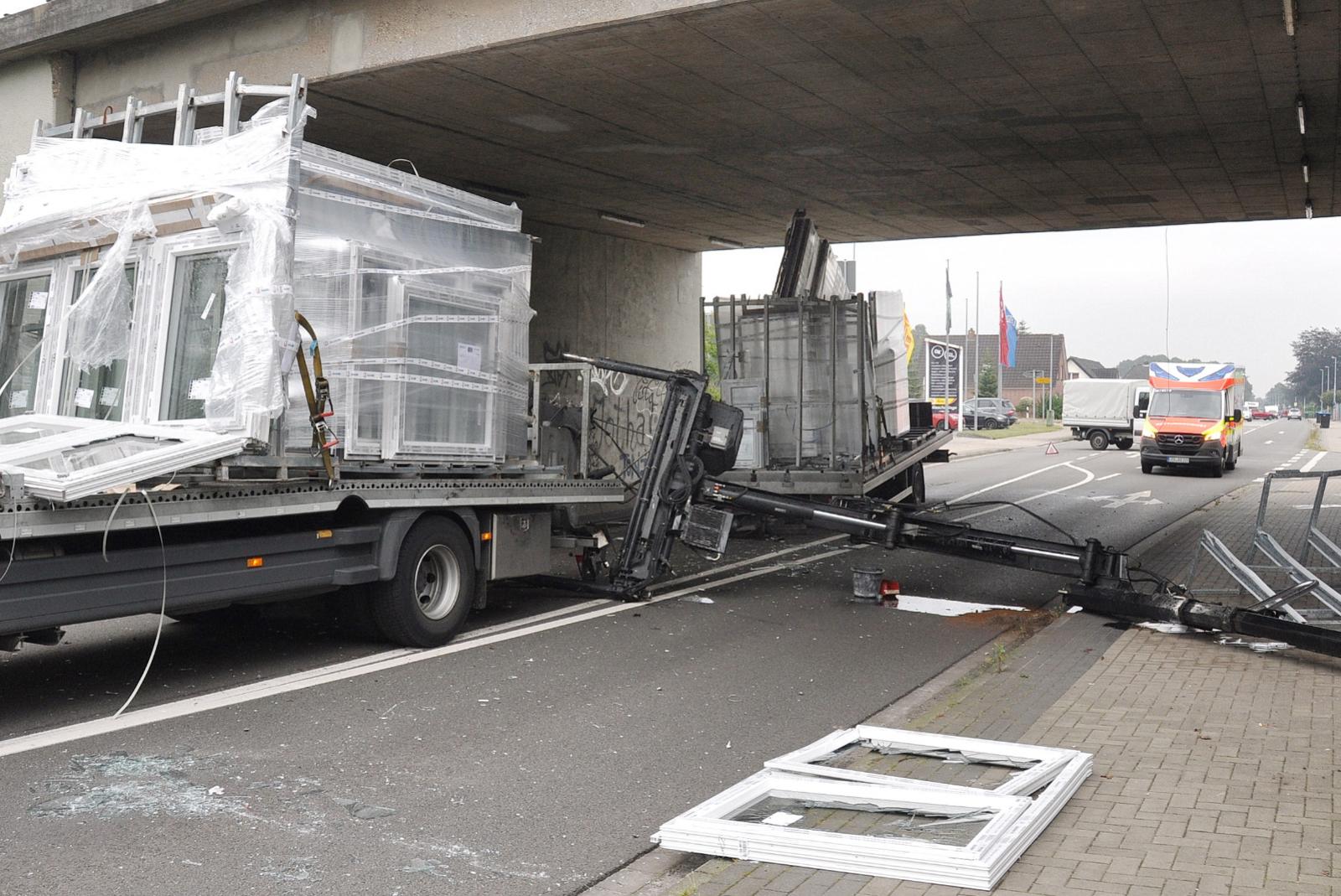 Der 39-jährige Fahrer eines Lastwagens mit Anhänger aus Westerstede, der Fenster geladen hatte, verunglückte heute gegen 10 Uhr, als er auf der Koloniestraße in Veenhusen die Unterführung der Landesstraße 24 ...