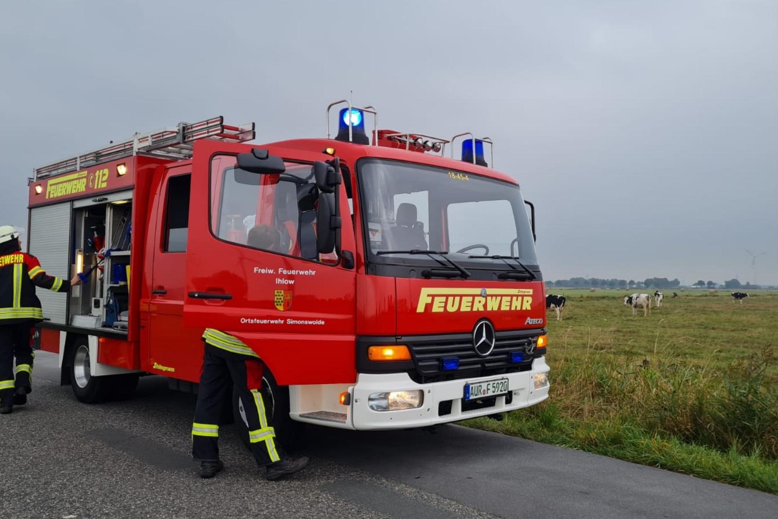 Zu einer Tierrettung wurde die Feuerwehr Simonswolde am Donnerstag gegen 11.30 Uhr in den Grootlandsweg alarmiert. Ein neugeborenes Kalb war in den Kanal gerutscht und konnte sich nicht selbständig aus seiner misslichen Lage befreien. Mit Unterstützung der Feuerwehr konnte dem Kalb wieder auf die Beine geholfen werden. Nach circa 20 Minuten war der Rettungseinsatz schließlich erfolgreich beendet.