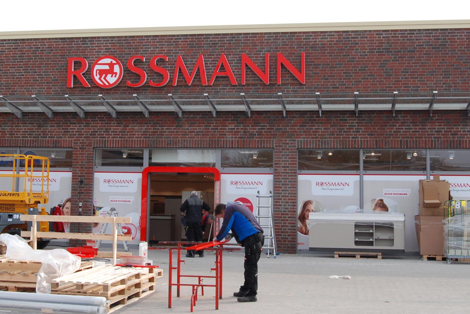 Eine Schaufensterscheibe des Drogeriemarktes Rossmann in Weener, unser Bild zeigt den Markt in der Bauphase, haben Unbekannte in der Nacht zum Sonnabend beschädigt.