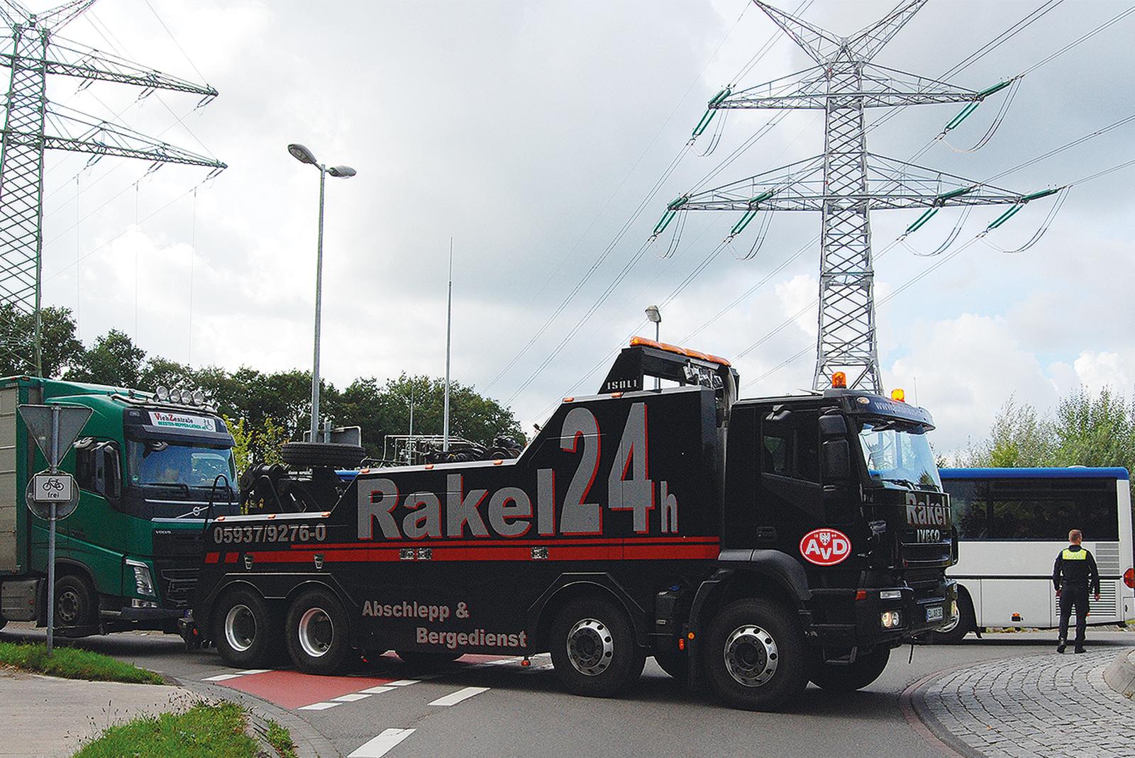 Viehtransporter bleibt am Kreisel in Stapelmoor liegen