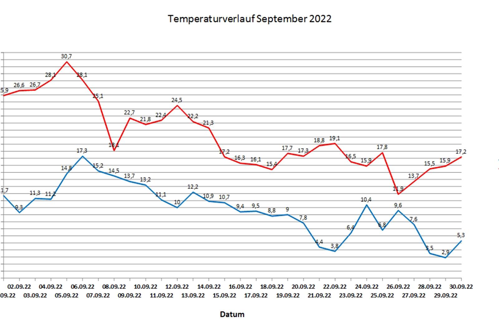 Mit dem September 2022 liegt der erste meteorologische Herbstmonat des Jahres hinter uns. Das Fazit: Der September war etwas milder und leicht sonniger, der Niederschlag lag exakt im Durchschnitt des offiziellen 30 Jahres-Referenzzeitraums (1961 bis 1990).