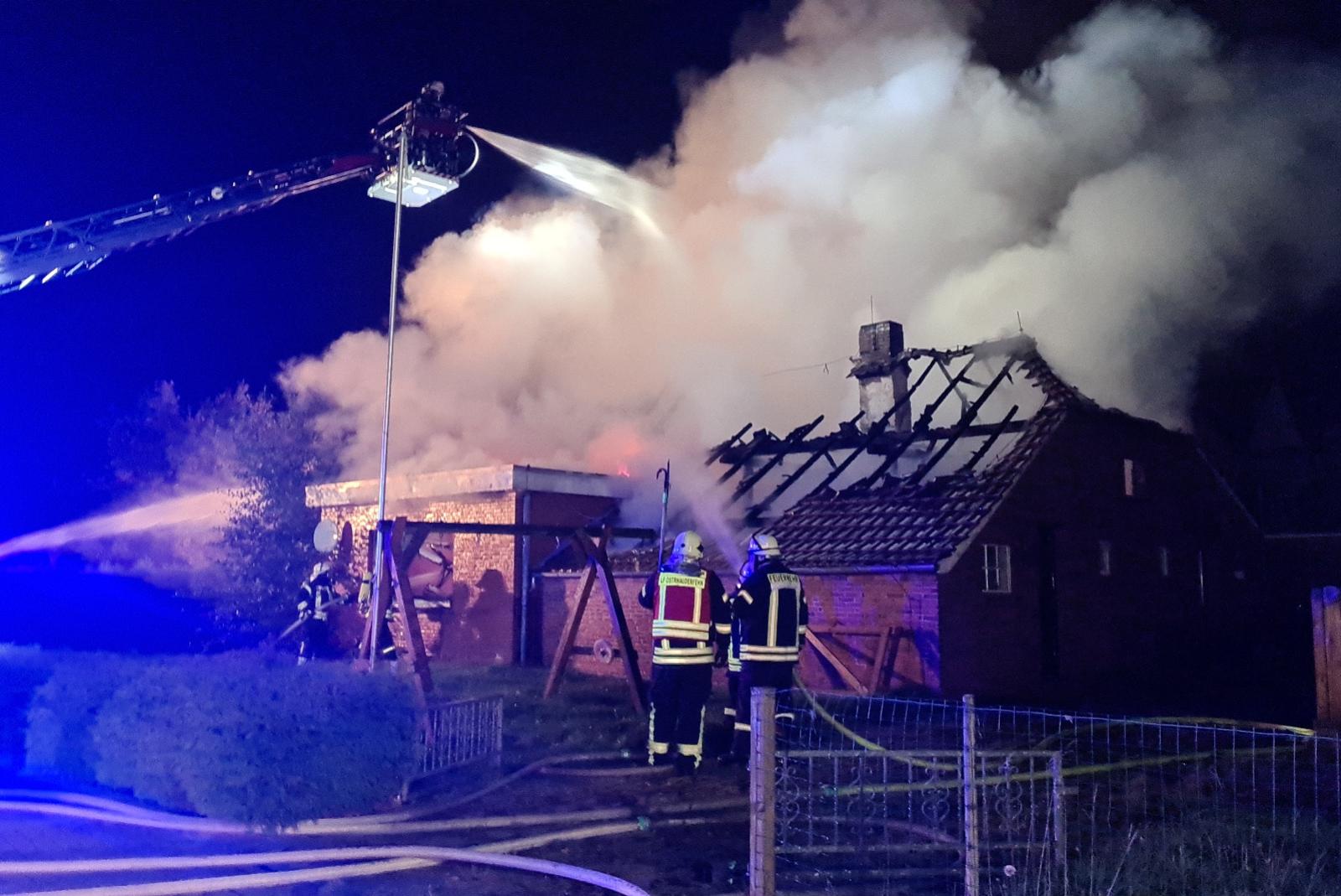 Ein unbewohntes Haus in der Kirchstraße in Ostrhauderfehn ist in der frühen Montagnacht gegen 2.15 Uhr in Vollbrand geraten. Verletzt wurde durch das Feuer niemand, sagt der stellvertretende Ortsbrandmeister der Freiwilligen Feuerwehr Ostrhauderfehn, Lars Ammermann, vor Ort.