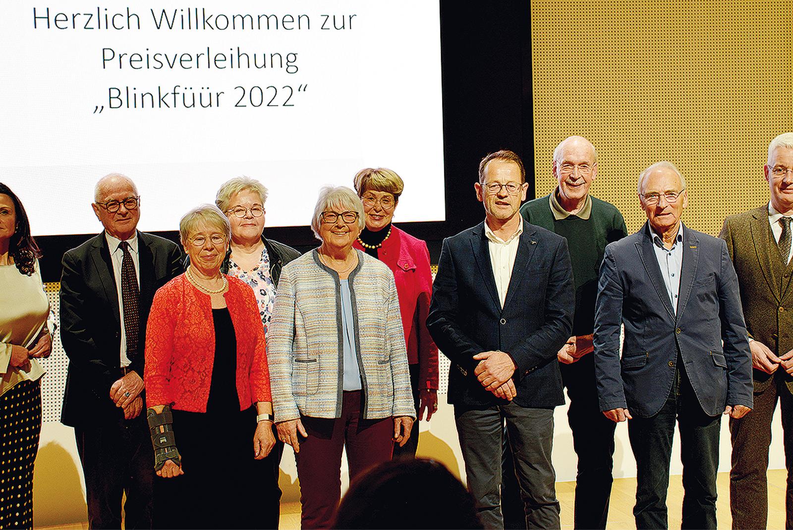 Zum Dank für ihren herausragenden ehrenamtlichen Einsatz für die Gesellschaft wurden am Freitagabend im Forum der Sparkasse in Leer insgesamt neun Männer und Frauen aus dem Landkreis Leer mit dem »Blinkfüür 2022« geehrt.