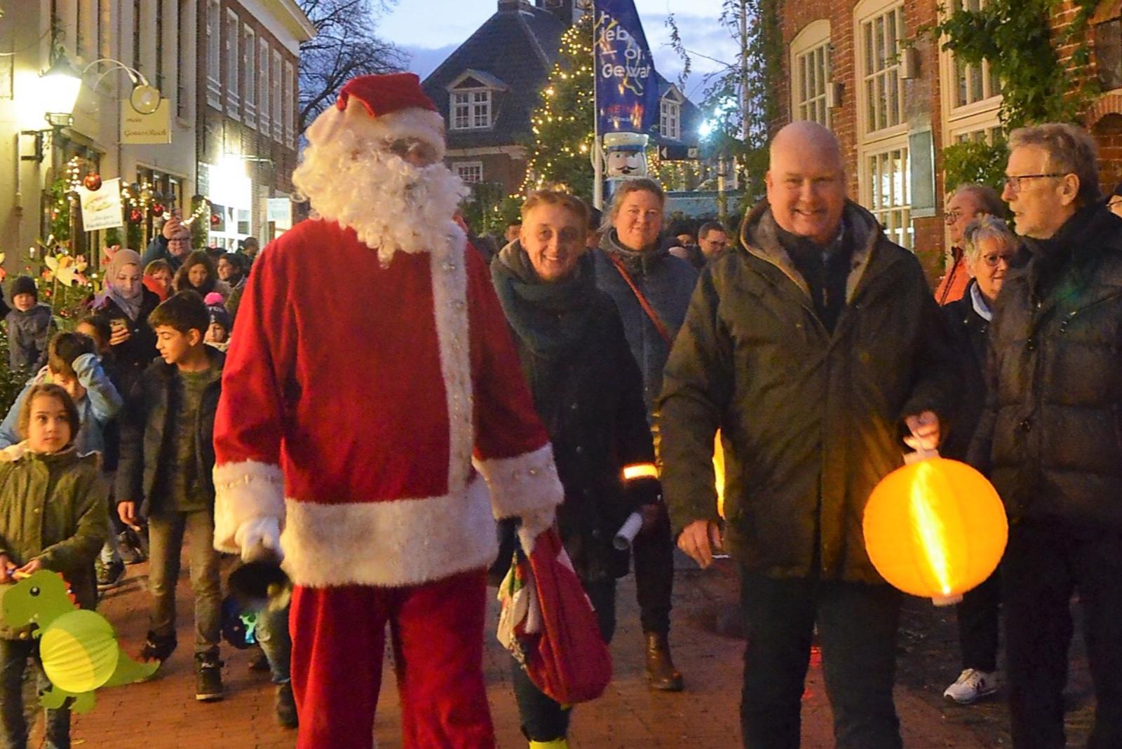 Laternenumzug mit Weihnachtsmännern aus Schokolade