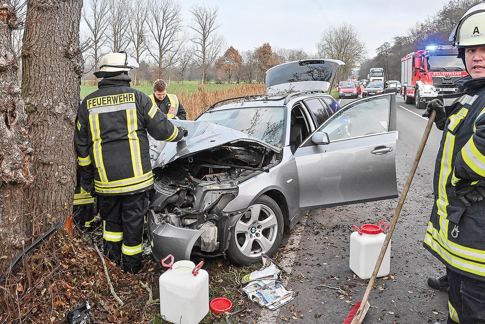 Frontal gegen einen Baum geprallt ist der 67-jährige Fahrer eines Fünfer-BMW, der heute gegen 15.20 Uhr auf der Bundesstraße 436 in Weener verunglückte. Der BMW wurde im Frontbereich schwer beschädigt und dürfte nur noch Schrottwert besitzen. ...