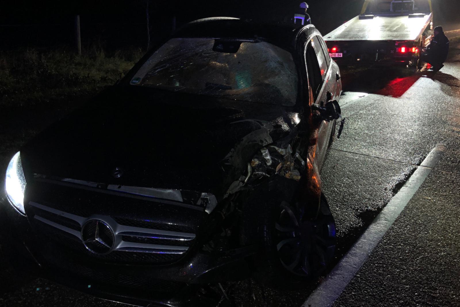 Das Auto drehte sich und kam stark beschädigt in Fahrtrichtung Bundesstraße auf der Fahrbahn zum Stehen. Das automatische Notrufsystem des Fahrzeugs löste Alarm aus. Kurze Zeit später meldete zudem ein Verkehrsteilnehmer, der an der Unfallstelle vorbeikam, den Unfall.