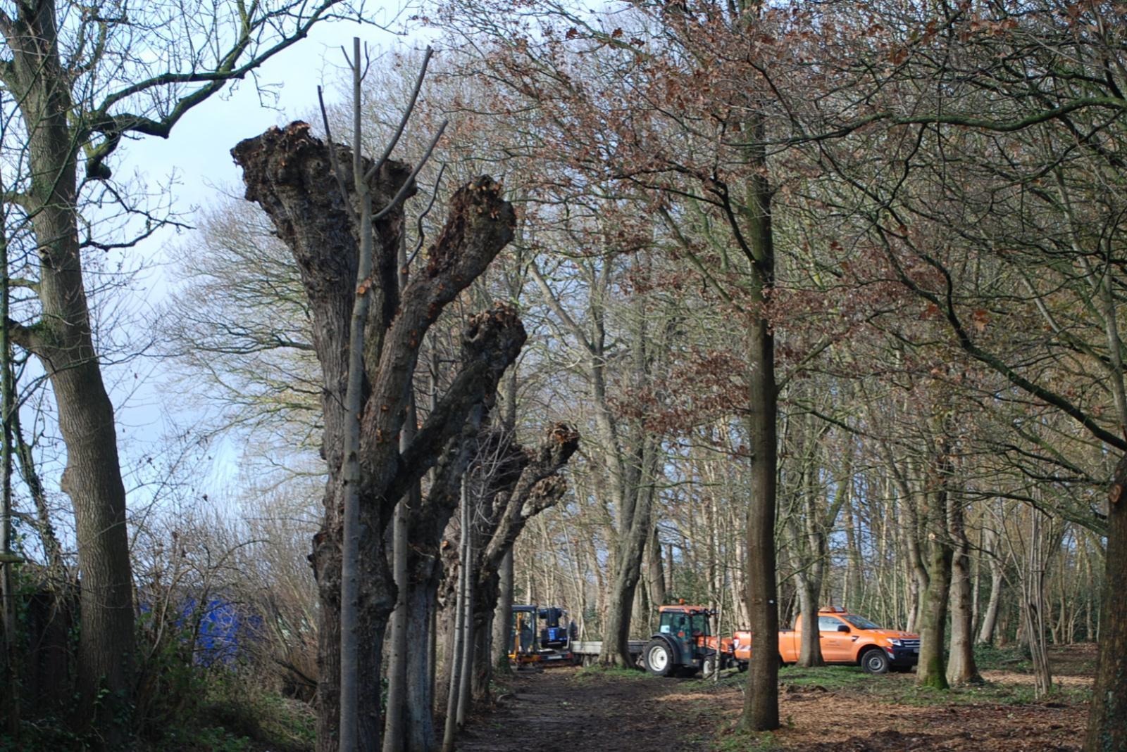 Ein bis zu fünfköpfiges Team des städtischen Bauhofes ist derzeit bei Baumpflege-Arbeiten im Nutzgarten der Spenningaburg an der Hauptstraße in Stapelmoor vor Ort im Einsatz.