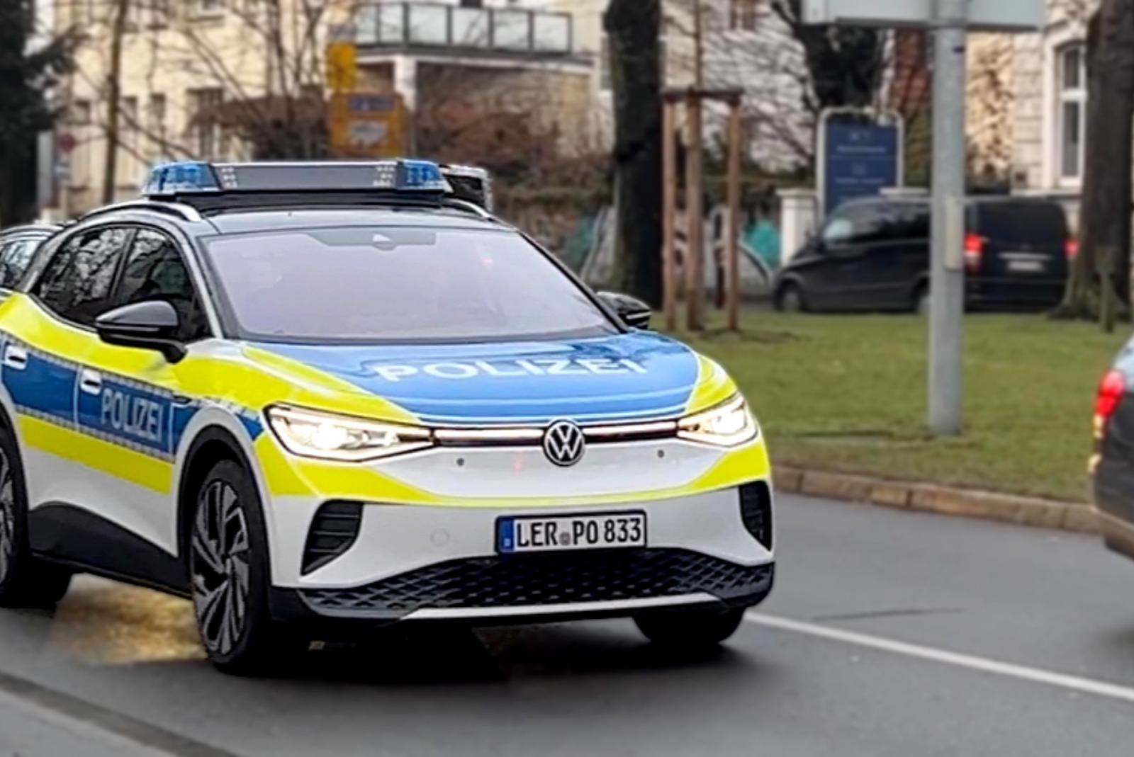 Der Fuhrpark der Polizeidirektion Osnabrück bekommt pünktlich zum Weihnachtsfest ein besonderes, elektrifiziertes "Geschenk": Ein rein elektrisch betriebener Streifenwagen im Rund-um-die-Uhr-Dienst in der Polizei Niedersachsen, ein VW ID 4, verstärkt ab sofort den Fuhrpark der Direktion. Der neue Elektro-Streifenwagen wird im Stadtgebiet von Leer zum Einsatz kommen, teilt die Polizeidirektion Osnabrück mit. In der Polizei Niedersachsen seien derzeit drei rein elektrisch betriebene E-Streifenwagen unterwegs, allesamt in der Polizeidirektion Osnabrück - neben Leer auch seit einiger Zeit in Ostrhauderfehn und auf der Insel Borkum. Michael Maßmann, Präsident der Polizeidirektion Osnabrück übergab das neue Einsatzfahrzeug am Donnerstag an die zuständige Polizeiinspektion Leer/Emden.
