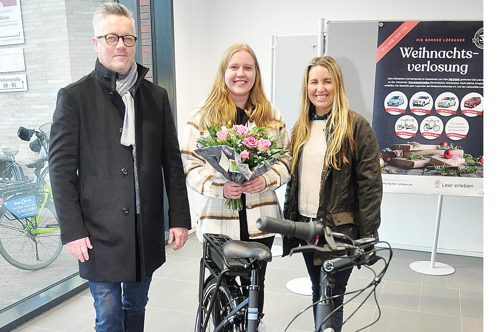 Die letzten Fahrräder der Leeraner Weihnachtsverlosung wurden am Freitag an die glücklichen Gewinner übergeben. Aus Weener konnte sich Ines Huisinga über ein neues E-Bike freuen. Drei Hauptgewinne der Weihnachtsverlosung wurden derweil noch nicht abgeholt. Somit sucht die Werbegemeinschaft ...