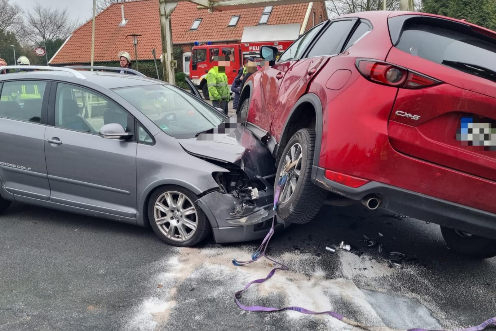 Nach ersten Erkenntnissen fuhr gegen 13.45 Uhr eine 60 Jahre alte Frau mit einem Mazda auf der Schmiedestraße und wollte an der Kanalstraße Nord geradeaus über die Brücke fahren. Beim Überqueren der Straße übersah sie eine von links kommende VW-Fahrerin. Die 71-jährige VW-Fahrerin konnte nicht mehr rechtzeitig abbremsen und fuhr in die Fahrerseite des Mazdas, heißt es in einer Mitteilung der Polizei. Dabei schob sich der Mazda auf die Motorhaube des VW, sodass die 60-Jährige Mazda-Fahrerin aus ihrem Auto befreit werden musste, teilt die Kreisfeuerwehr Aurich mit.