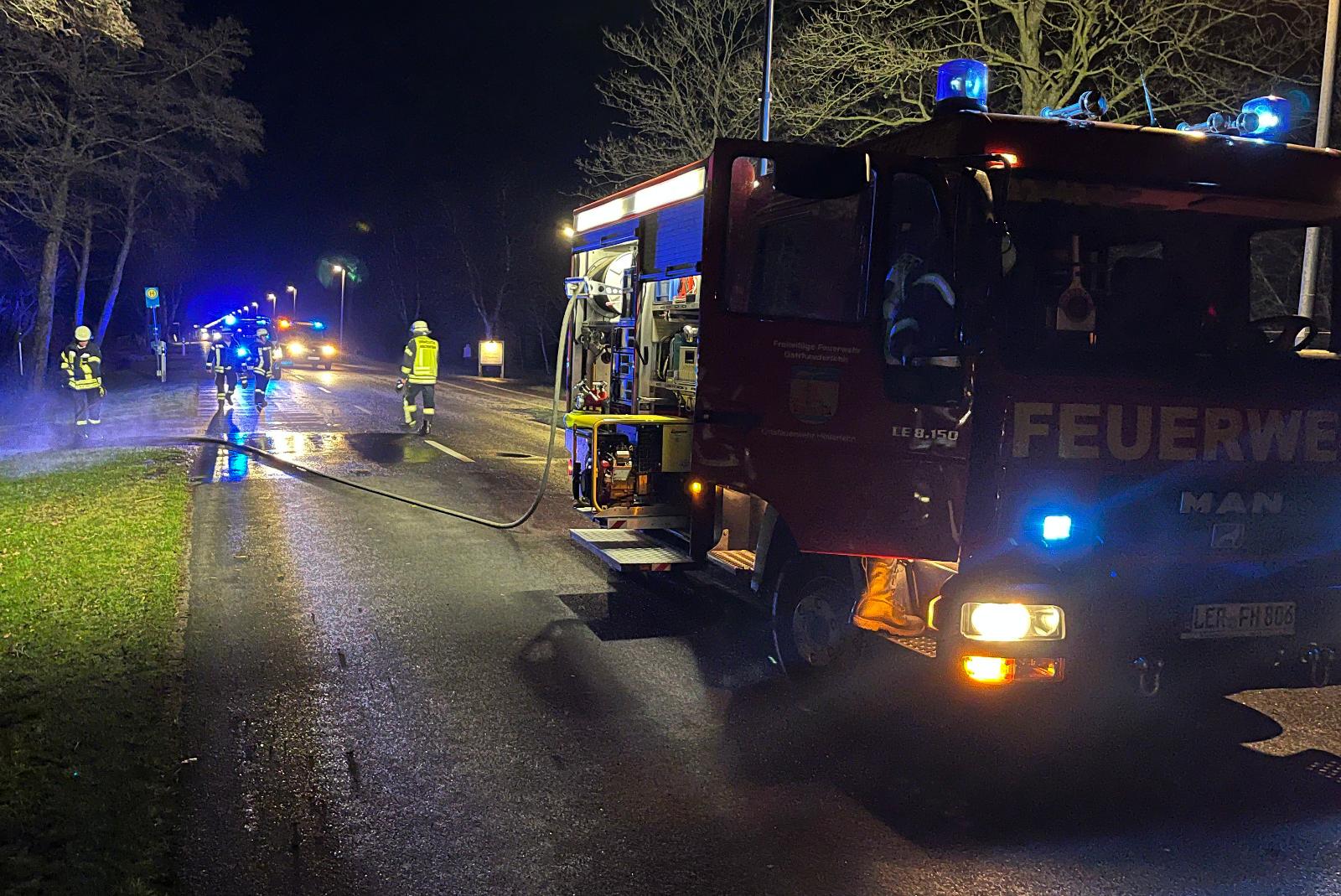 Der Fahrer des Ackerschleppers kümmerte sich umgehend um eine Abpumpmöglichkeit für die verbleibenden ca. 15.000 Liter Gülle aus dem Anhänger. Die notwendigen Reinigungsarbeiten wurden über den Landkreis Leer veranlasst. Zur Soforthilfe waren Einsatzkräfte der örtlichen Feuerwehr vor Ort. Die Polizei Rhauderfehn hat den Unfall aufgenommen und alle erforderlichen Maßnahmen vor Ort getroffen.